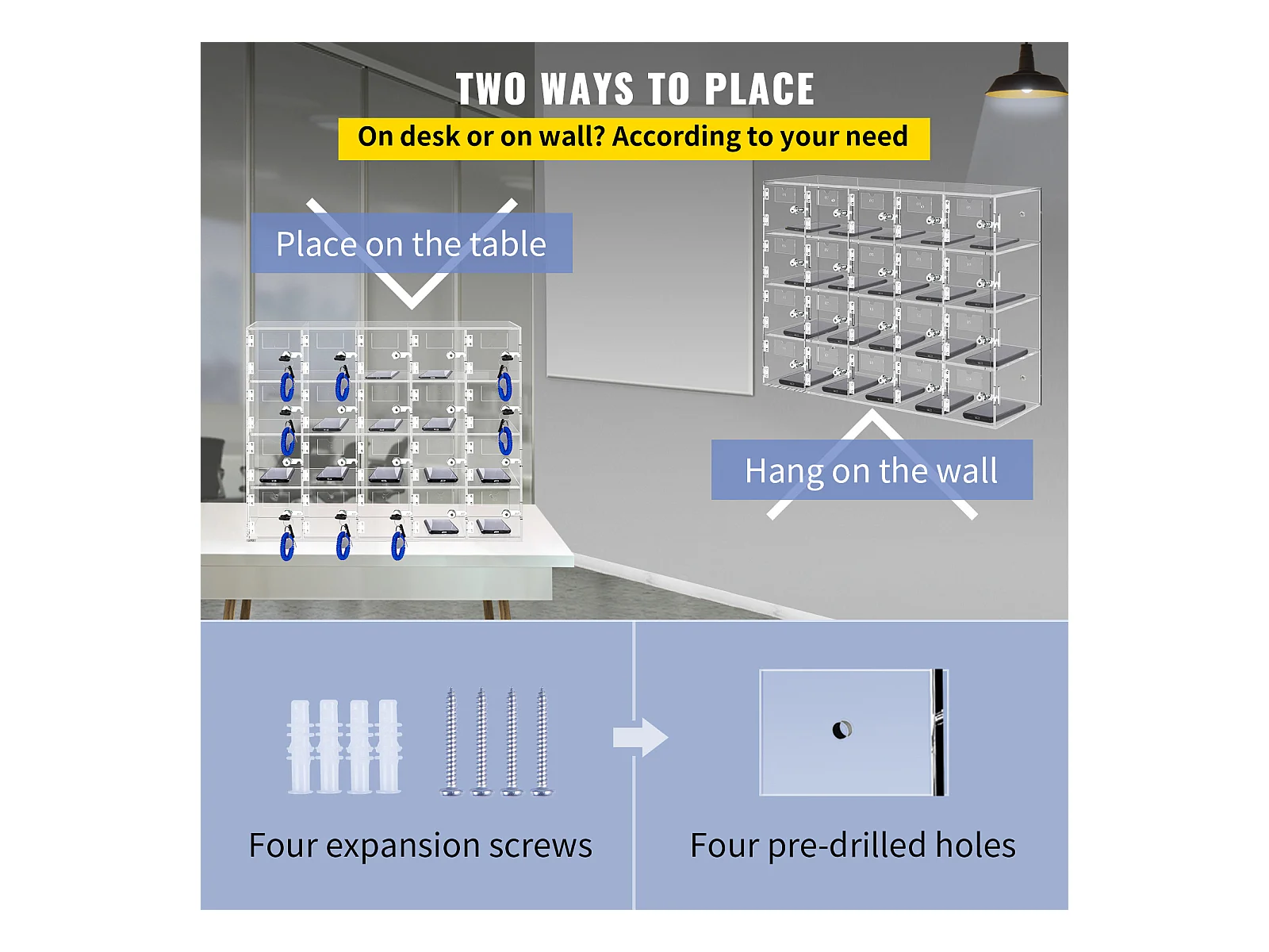 Casier pour Téléphone SucceBuy Portable en Acrylique, Armoire de Rangement à 10 Emplacements avec Clés, Transparent