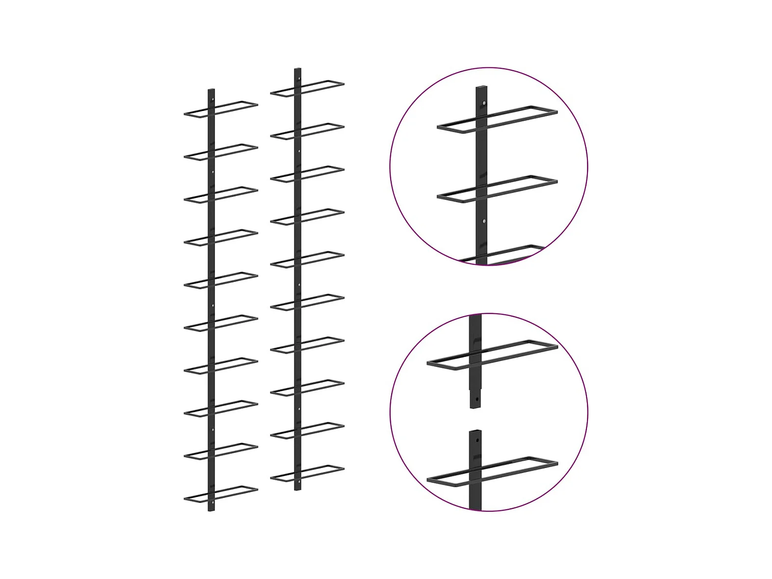 Casiers à bouteilles muraux pour 20 bouteilles 2 pcs Noir Métal FR745747