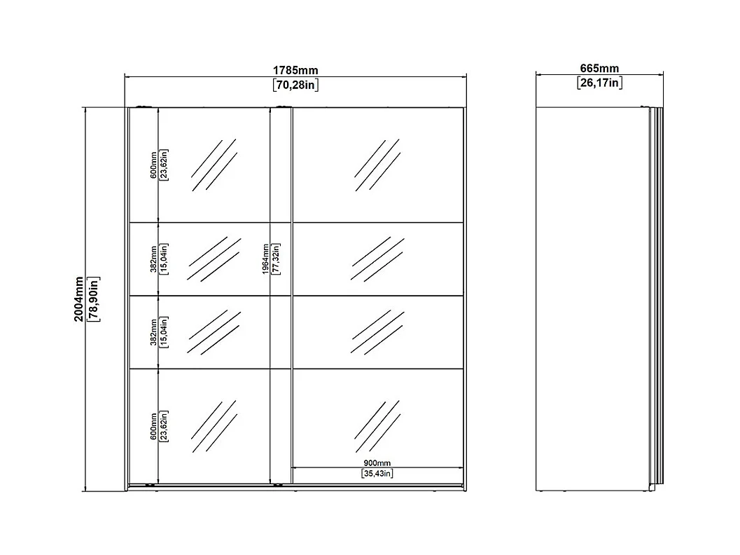 Catania armoire coulissante 2 portes avec miroir 180x200cm noir mat.