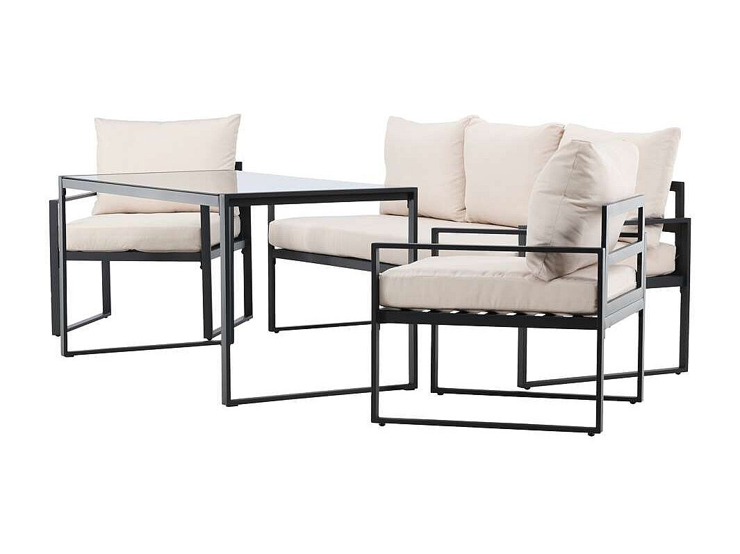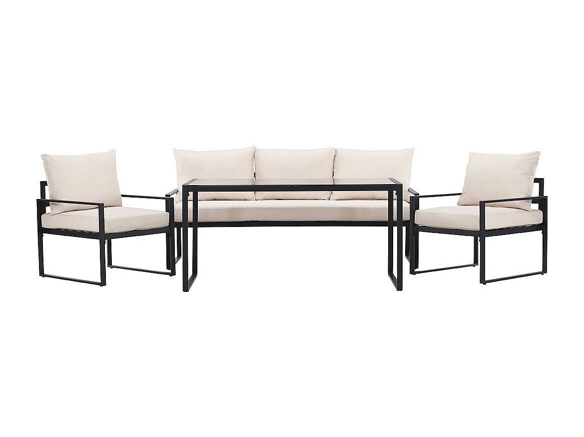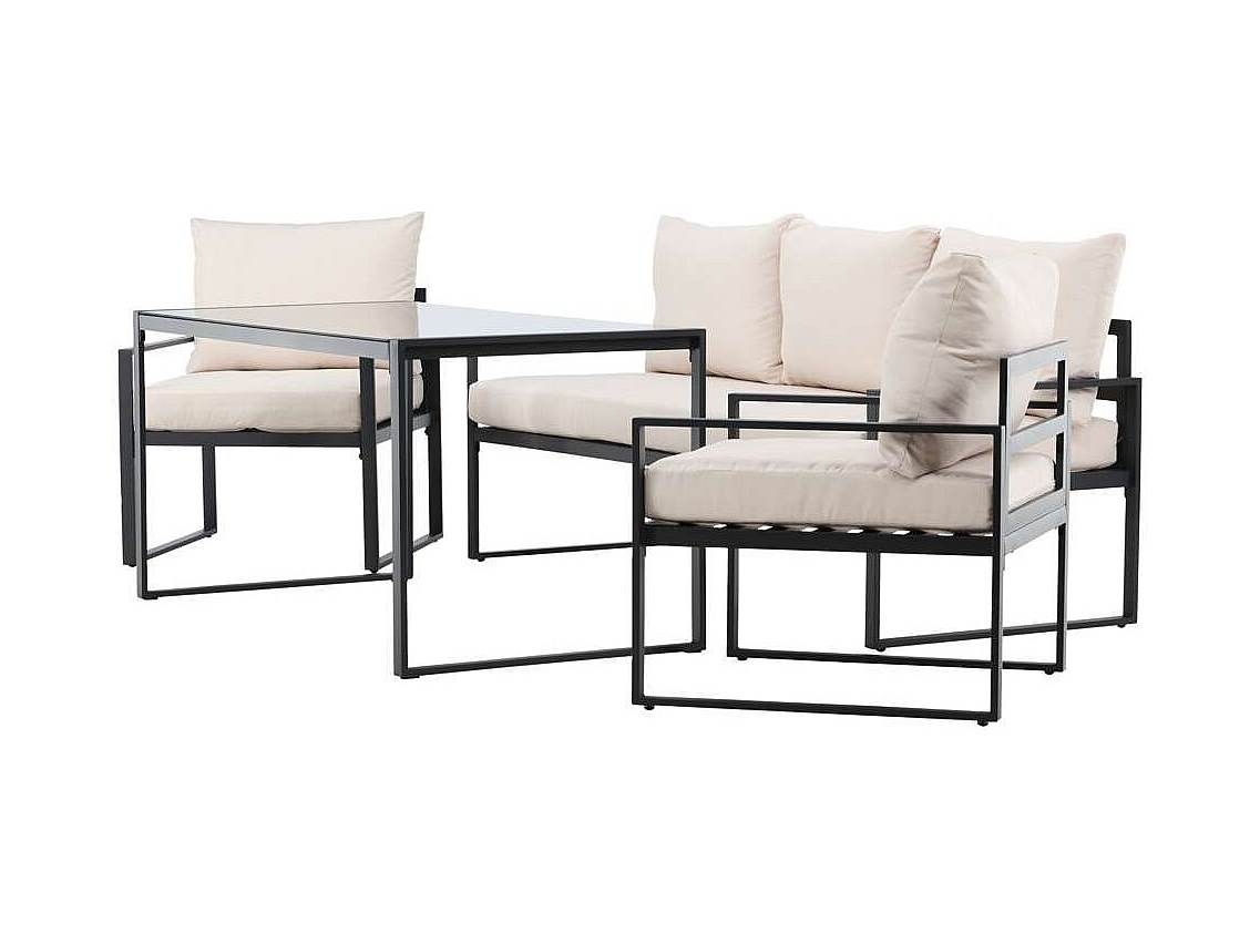 L'ensemble salon Catania en noir est le choix parfait pour les repas en plein air et la détente. L'ensemble se compose d'une table à manger, d'un canapé et de deux chaises, ce qui constitue un agencement de mobilier élégant et fonctionnel. La table a les dimensions H67xL70xP135 cm, ce qui offre beaucoup d'espace pour les repas ou la détente. Le canapé et les chaises sont équipés de coussins moelleux qui offrent à la fois confort et style. Le canapé mesure H66xL179xP69 cm, et les chaises H66xL65xP69 cm, ce qui assure un bon confort d'assise. La couleur noire et le design moderne rendent cet ensemble de salon idéal pour tout environnement extérieur, que ce soit pour la terrasse, le jardin ou le balcon.