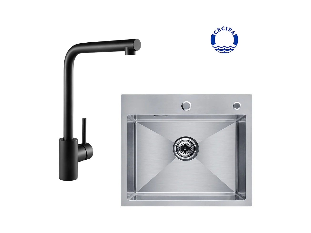 Cecipa max 2 en 1 Évier 1 Bac Inox 50 x 45 x 18,5 cm + Robinet de Cuisine Inox Extractible Chrome