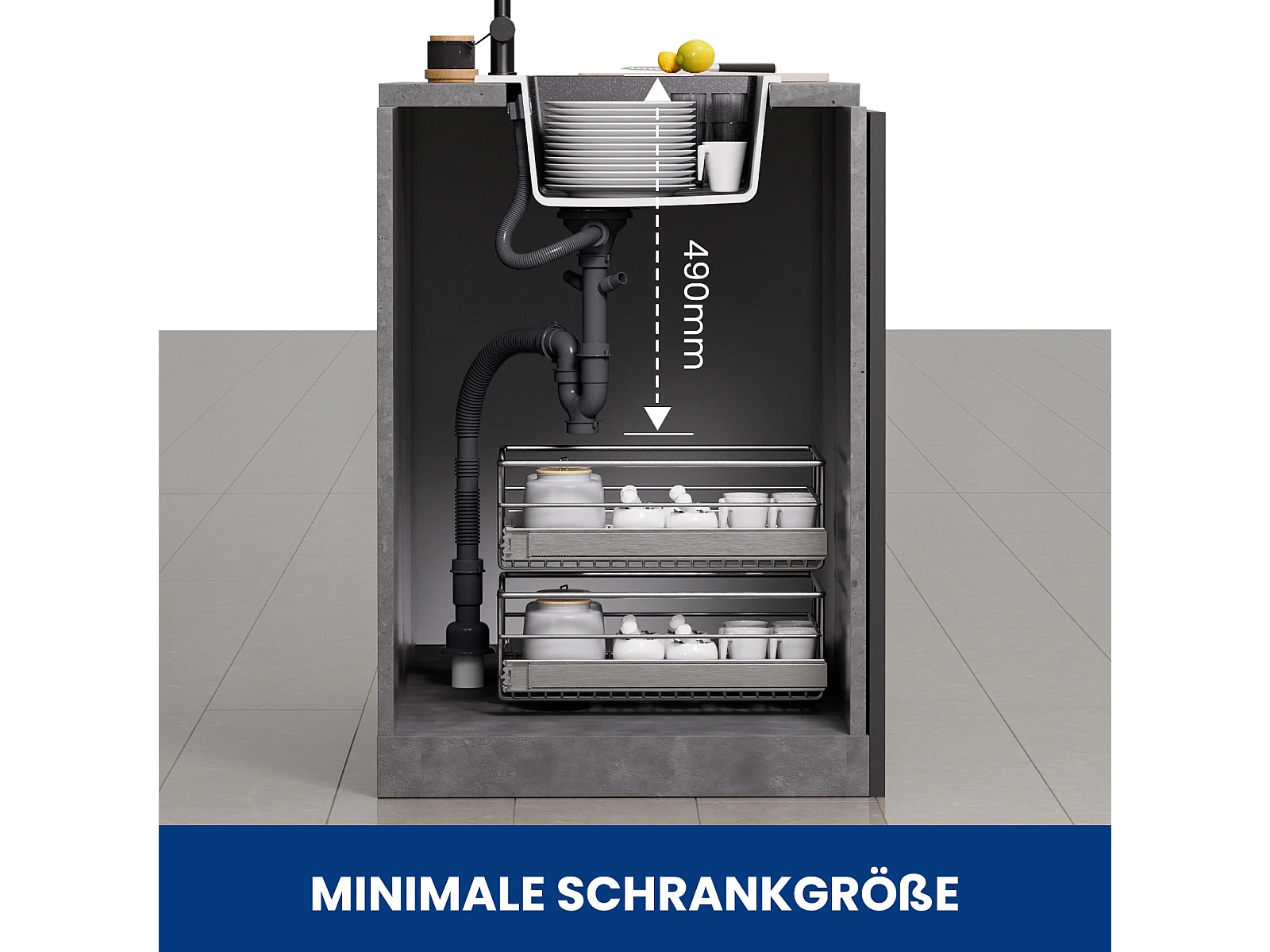 Cecipa MAX 40x45cm Noir Evier de Cuisine en Quartz et Résine Evier 1 Bac + Mitigeur de Cuisine Mural avec 2 Jets Noir