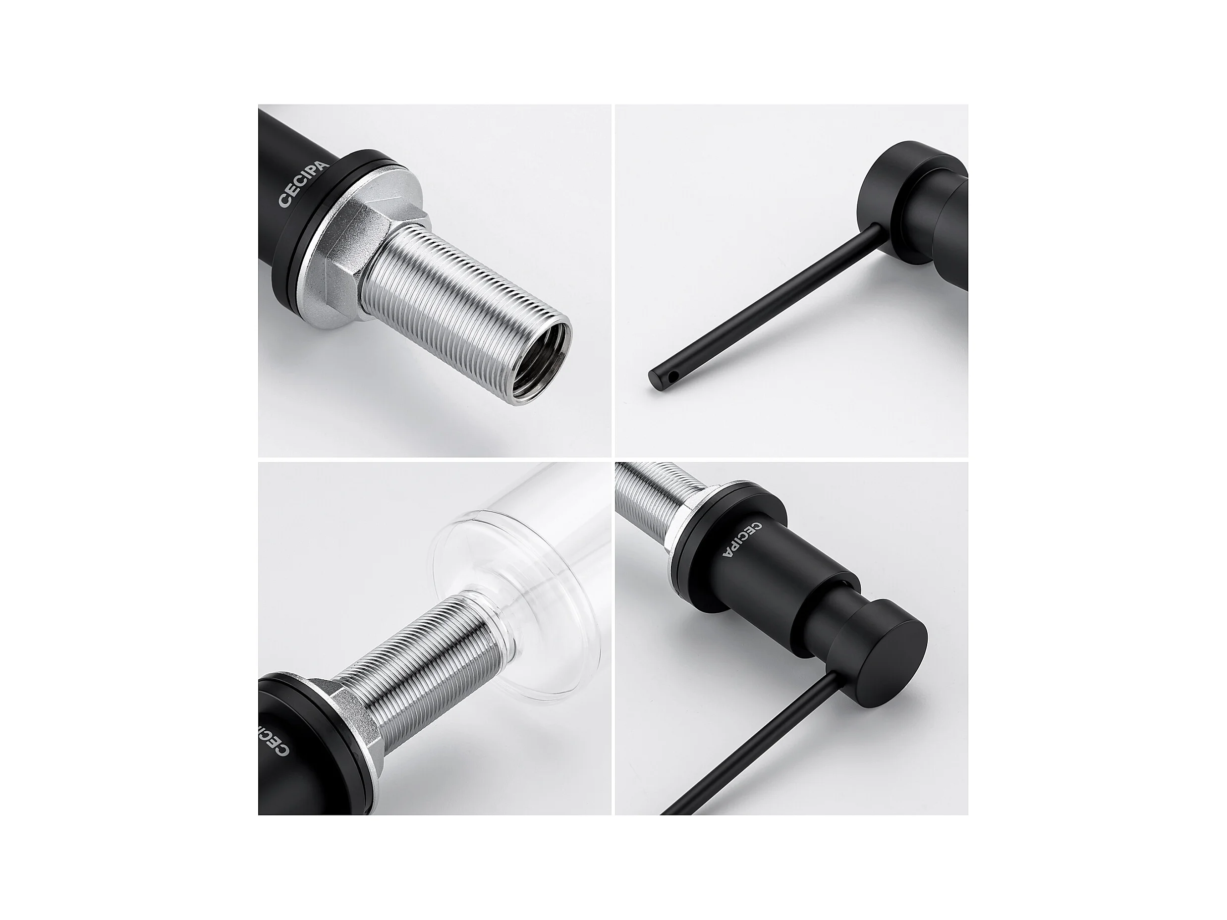Cecipa max Distributeur de Savon Noir-Distributeur de Savon pour Evier avec Récipient de 300ML + Tuyau d'extension en Silicone de 1,25M,EU Modèle
