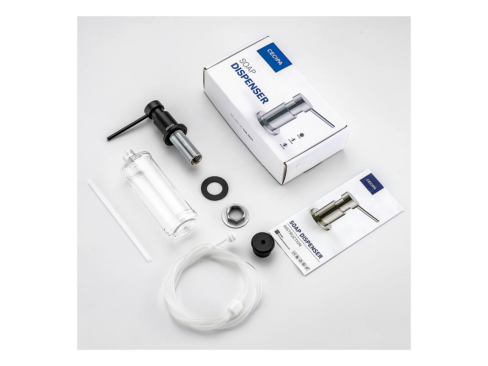 Cecipa max Distributeur de Savon de Cuisine Noir Distributeur de Savon avec Récipient de 300ML + Tuyau d'extension en Silicone de 1,25M,EU Modèle