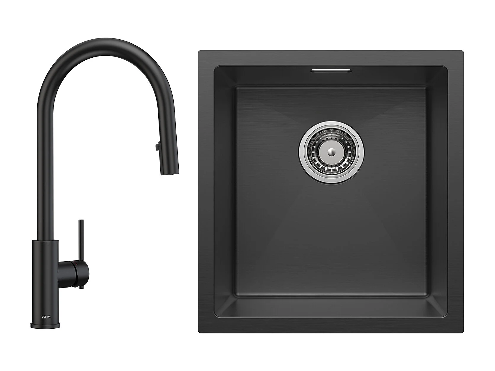 CECIPA MAX Évier de Cuisine 1 Bac Évier Inox 50*44CM Noir Anthracite + Mitigeur avec Douchette Extractible, Brossé