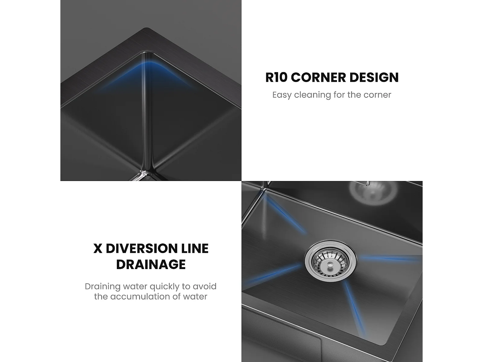Cecipa max Évier Encastré 50*44CM Évier de Cuisine 1 Bac Évier de Cuisine En Acier Inoxydable - 201 Nanomètre Noir,EU Modèle