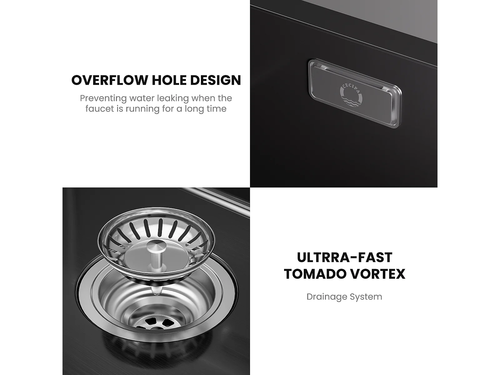 CECIPA MAX Évier de Cuisine 1 Bac Évier Inox 50*44CM Noir Anthracite + Mitigeur Cuisine pour Sstème D'osmose