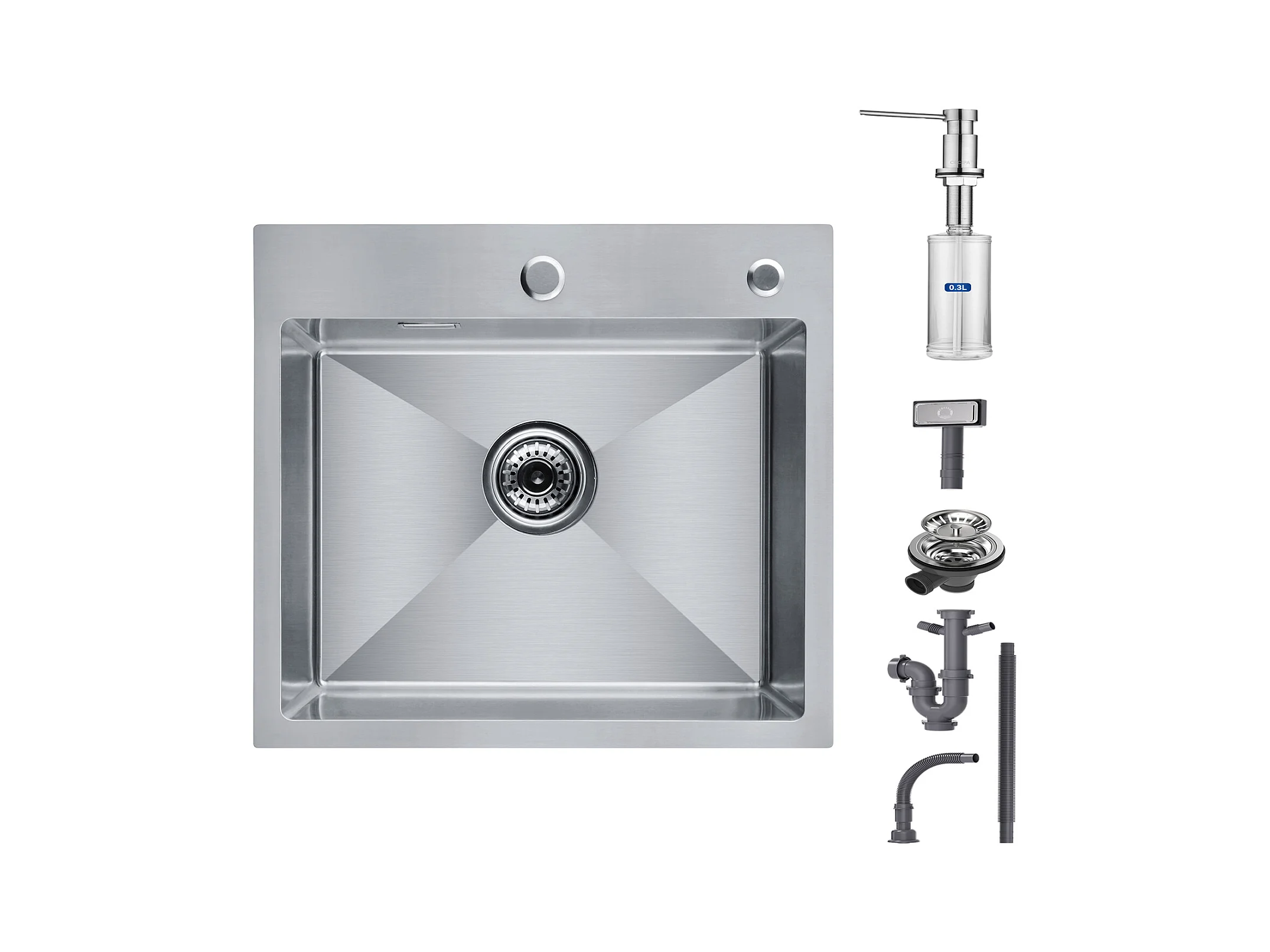 Cecipa max Évier 1 Bac 50×45×18.5CM Évier Cuisine Brossé en Acier Inox + Distributeur de Savon