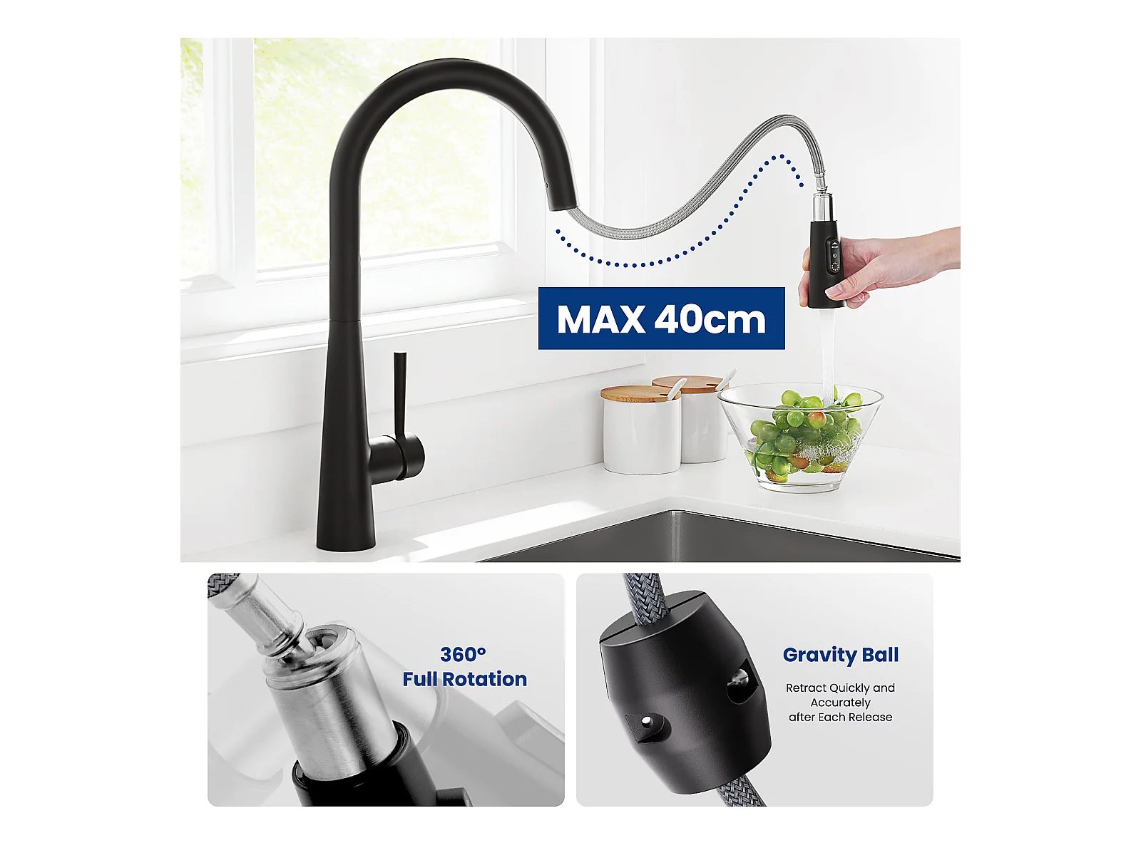 Robinet de cuisine avec douchette extractible en acier inoxydable - Noir mat - ROFLEX