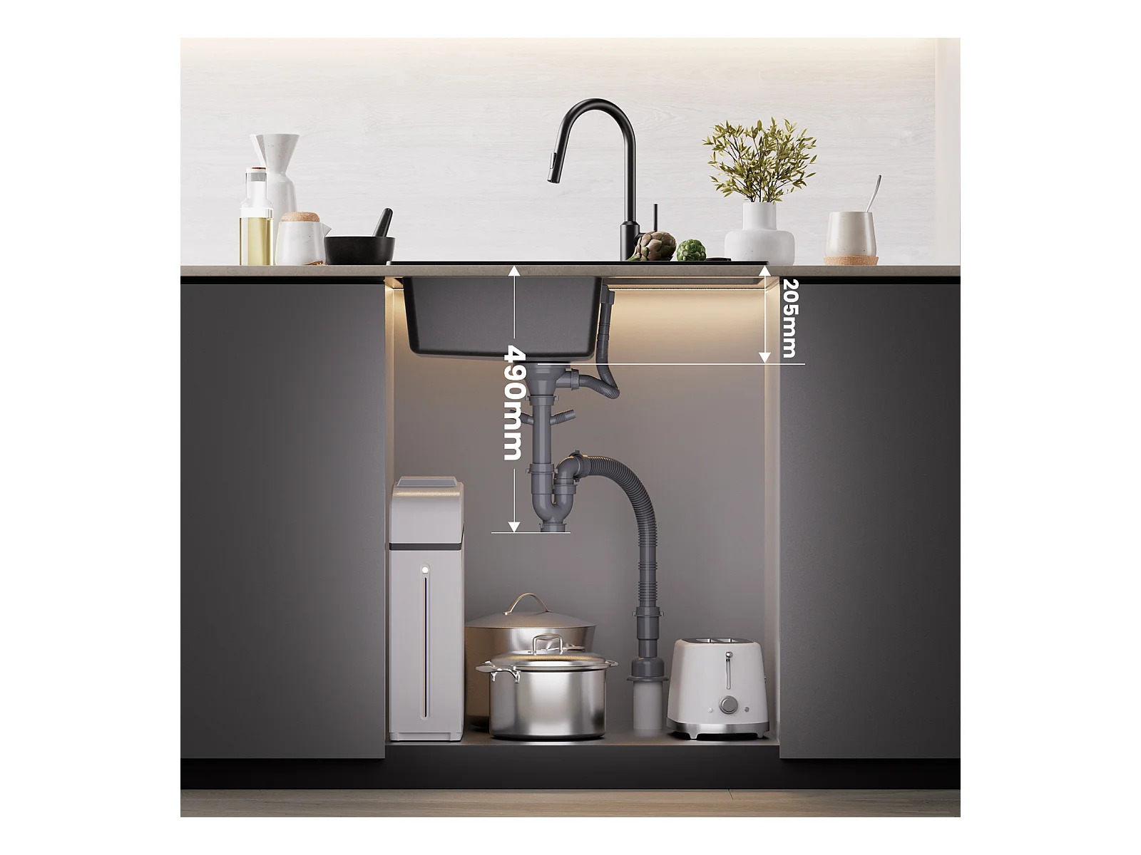 Cecipa max Evier 1 Bac en Quartz et Résine - Evier à encastrer avec Egouttoir - 78x45cm Evier 1 Bac Evier de Cuisine en Granit Noir,EU Modèle