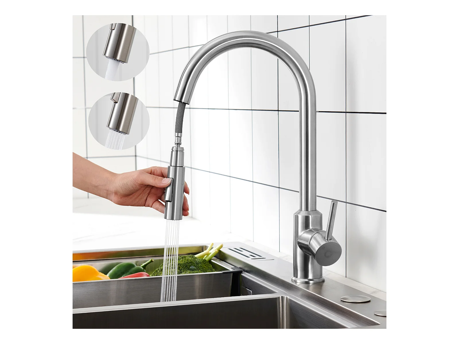 Robinet de cuisine avec douchette extractible en acier inoxydable - Chromé - RONA