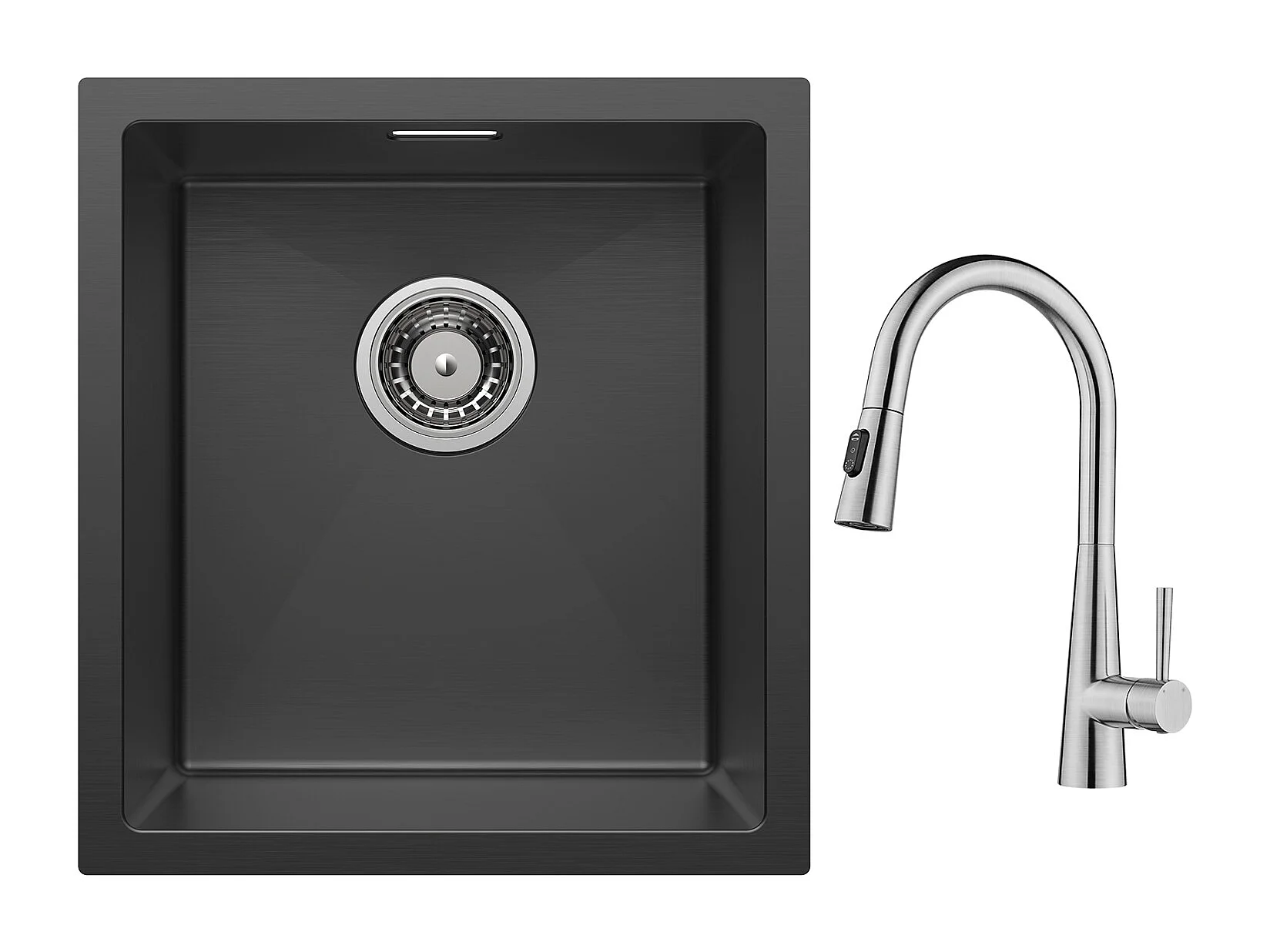 Cecipa max Évier 1 Bac en Acier Inoxydable Noir Évier Encastré 40*44cm + Mitigeur avec Douchette Extractible - Avec 3 Modes de Sortie D'eau - Brossé