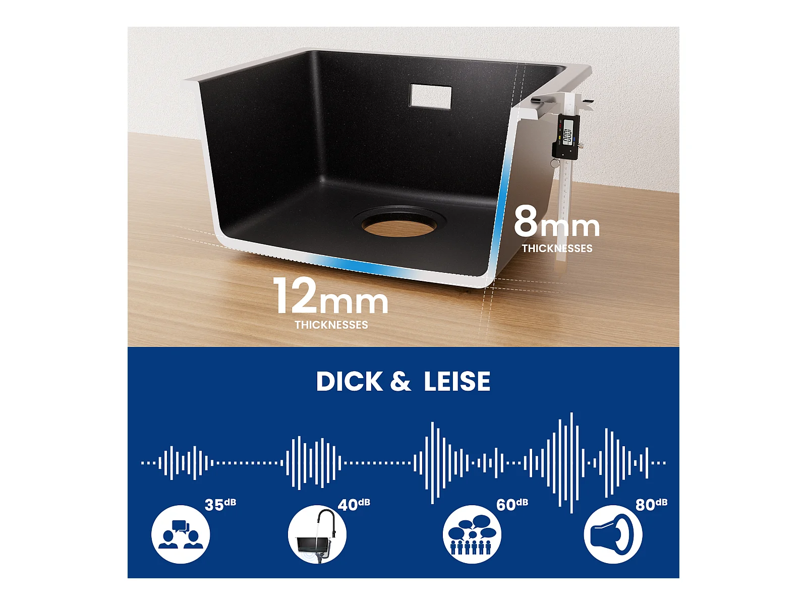 Cecipa MAX Evier 1 Bac en Quartz et Résine Noir Evier de Cuisine 45x45cm Evier à Encastrer 1 cuve