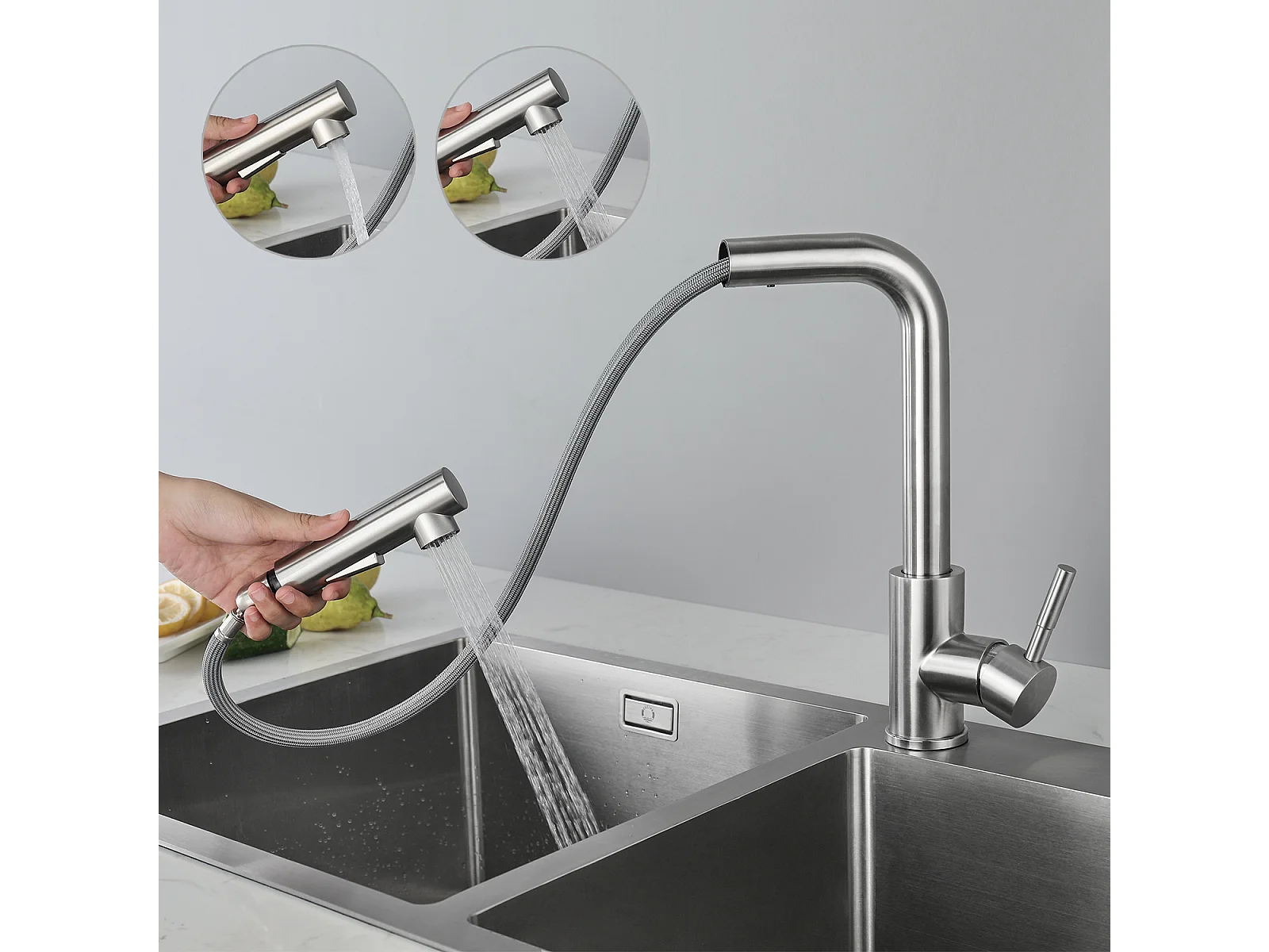 NETTLIFE robinet de cuisine robinet haute pression robinet d'évier de cuisine en acier inoxydable pivotant à 360°