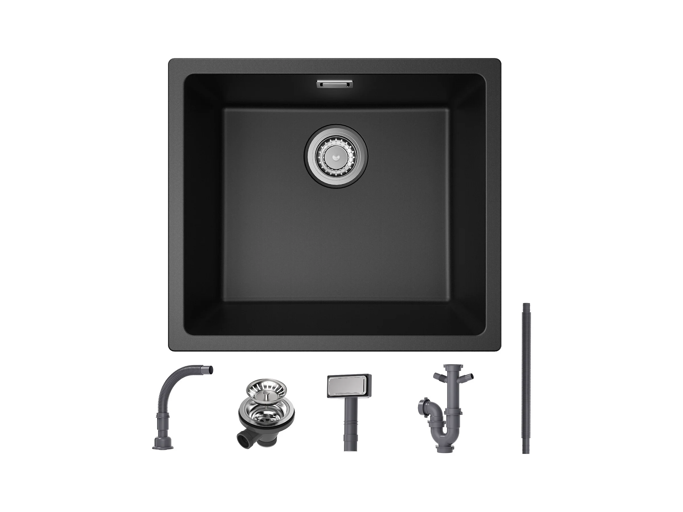 Evier 1 Bac en Quartz et Résine, 3 Options de Montage, 50*44*20cm + Robinet de Cuisine à eau Froide,Noir