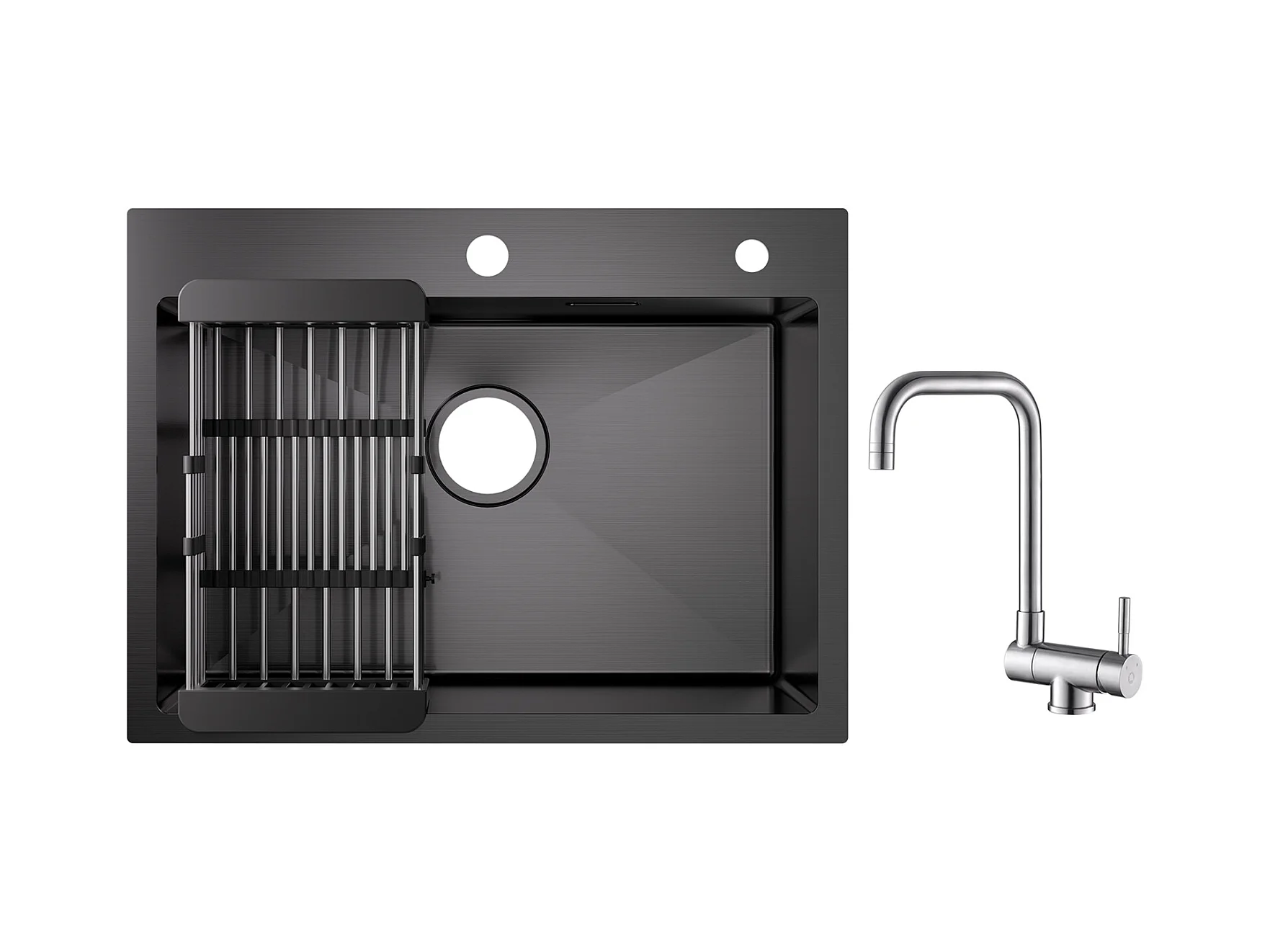 Cecipa max Évier 1 Bac Inox avec Panier de Drainage - Évier Cuisine Noir 60×45×18 cm + Robinet Cuisine Rabattable Mitigeur de Evier Repliable Brossé