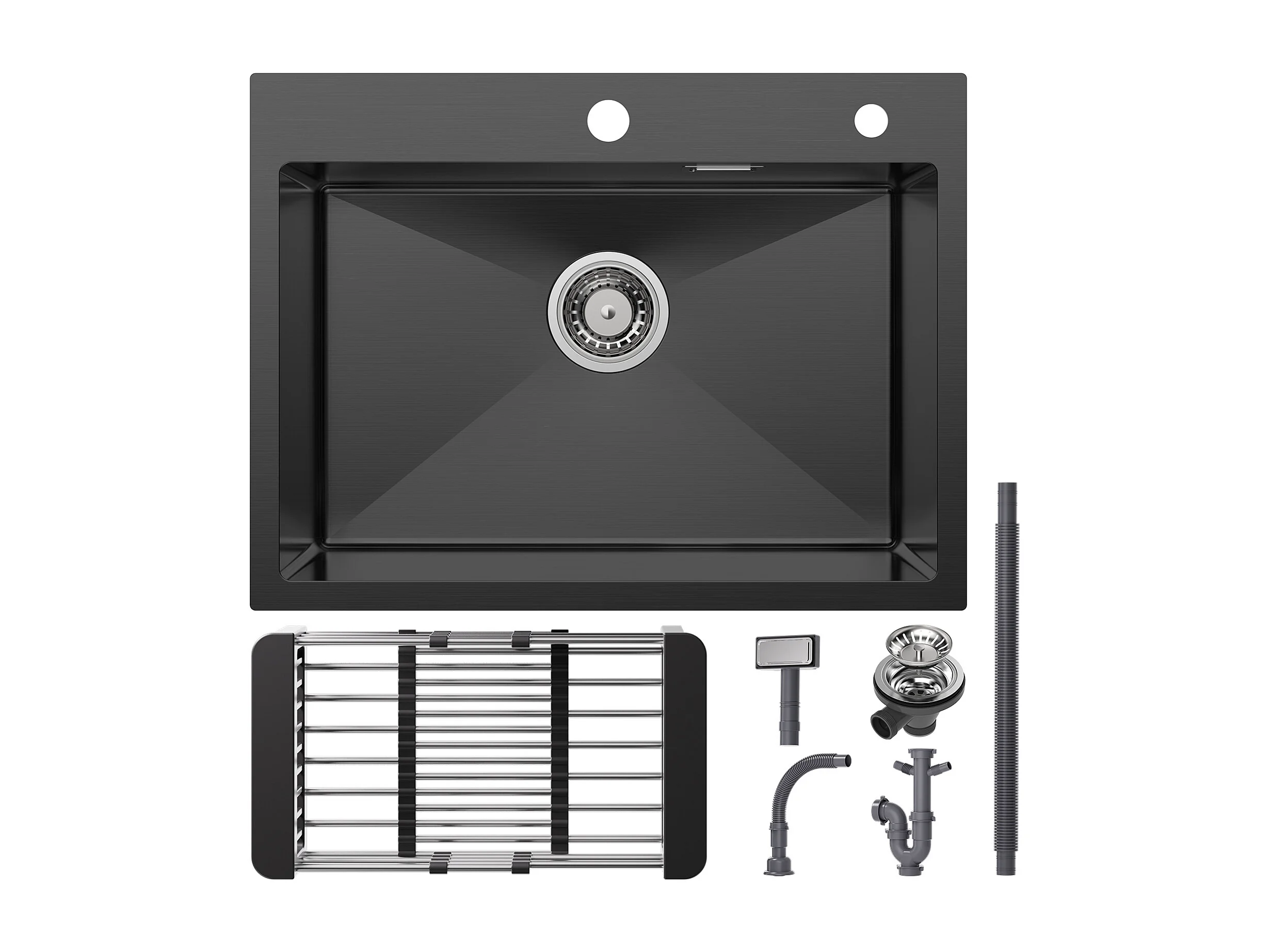 Évier Cuisine 1 Bac 60×45×18CM Évier Inox Noir avec Panier de Drainage + Mitigeur Cuisine Avec Douchette Extractible