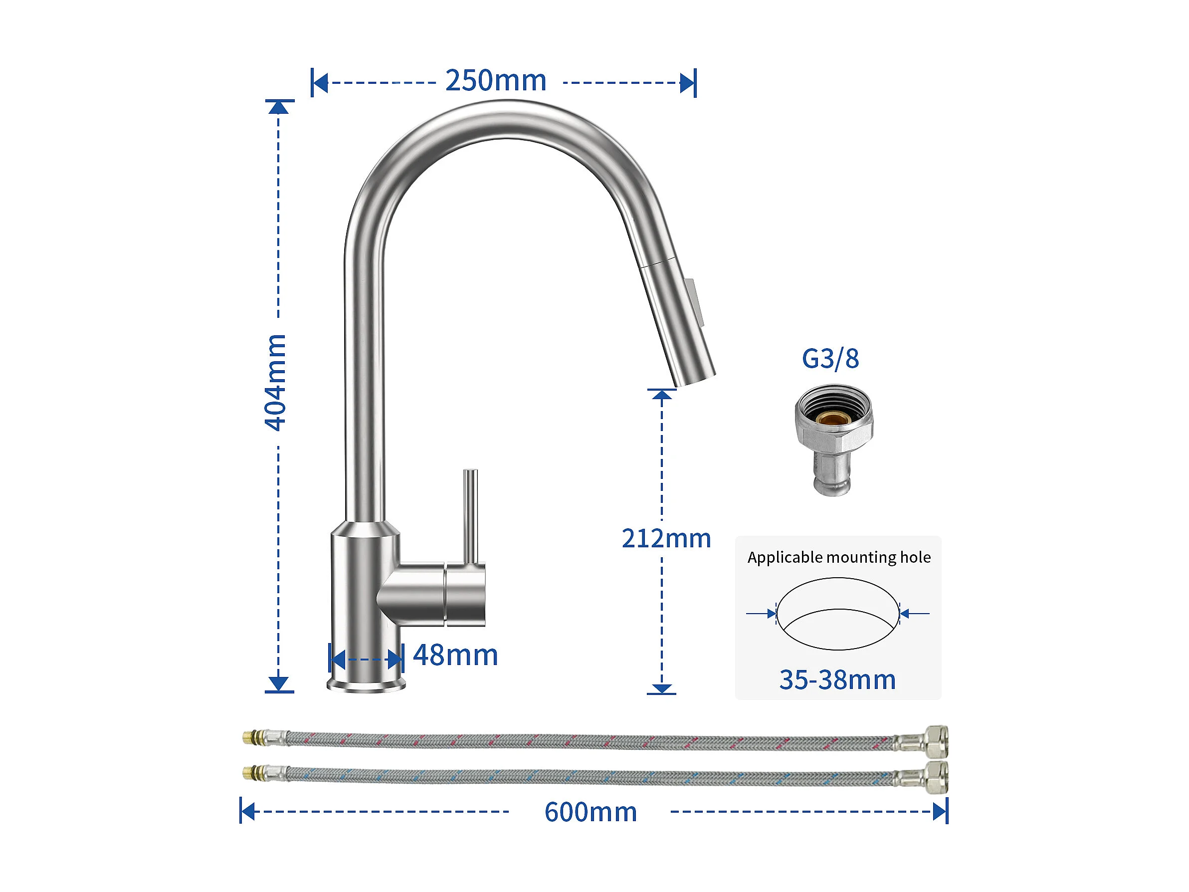 Robinet de cuisine avec douchette extractible en acier inoxydable - Chromé - RONA