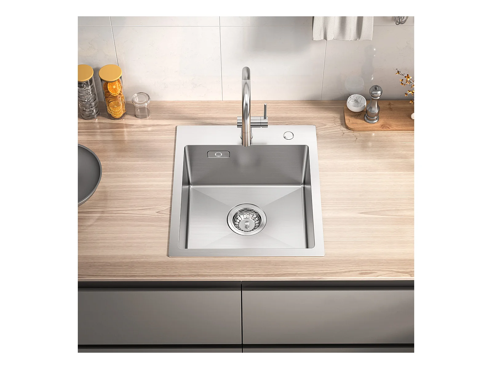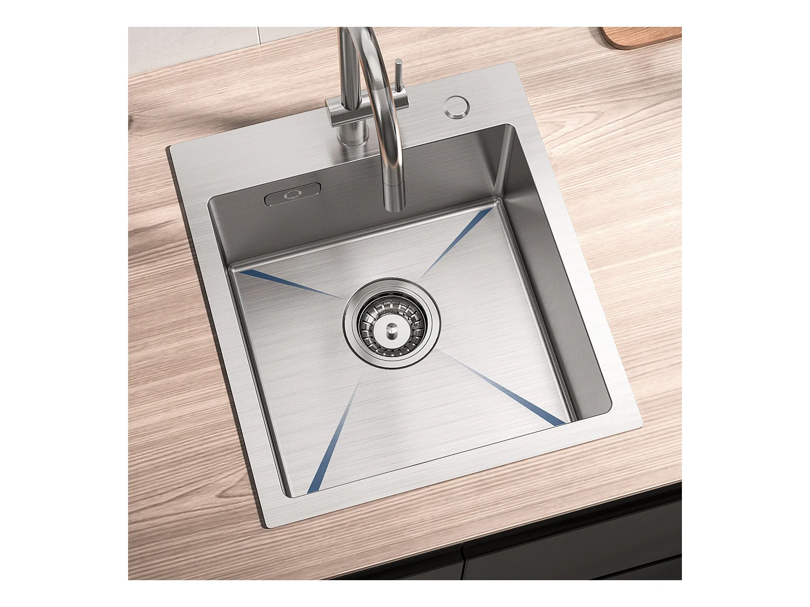 Cecipa MAX Évier Cuisine 1 Bac 40 × 45 cm Évier Inox Brossé + Mitigeur avec Douchette Extractible, Brossé