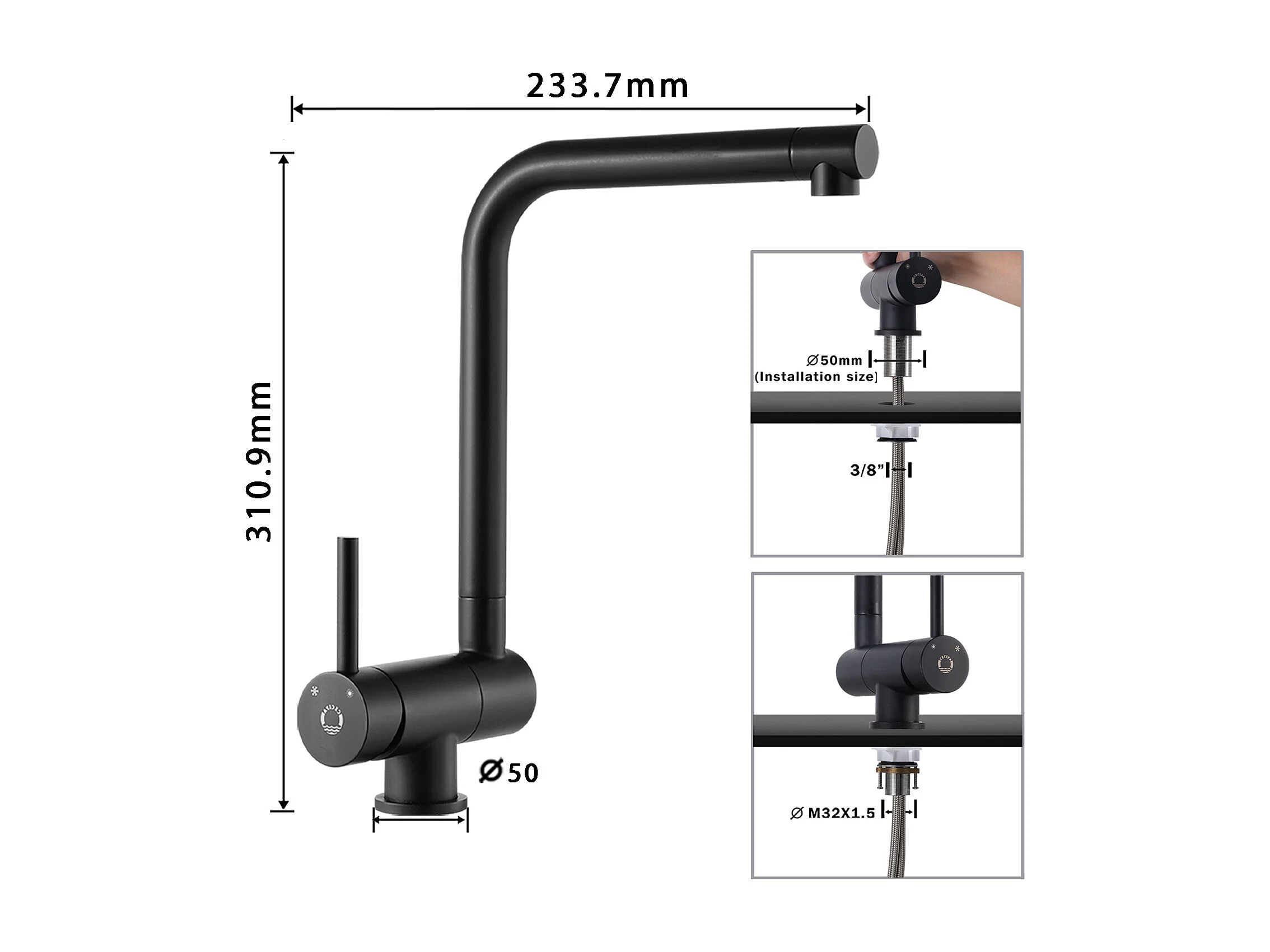 Cecipa MAX Évier Cuisine 1 Bac 40 × 45 cm Évier Inox Brossé + Robinet de Cuisine à eau Froide,Noir