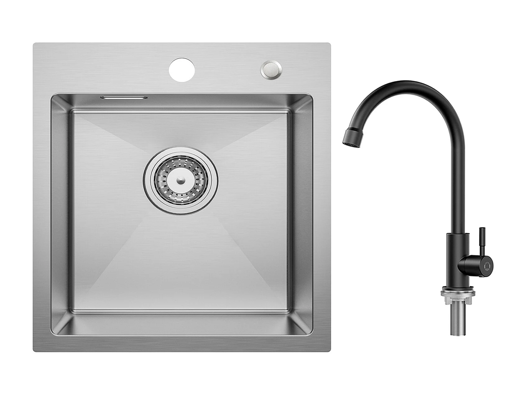 Cecipa MAX Évier Cuisine 1 Bac 40 × 45 cm Évier Inox Brossé + Robinet de Cuisine à eau Froide,Noir