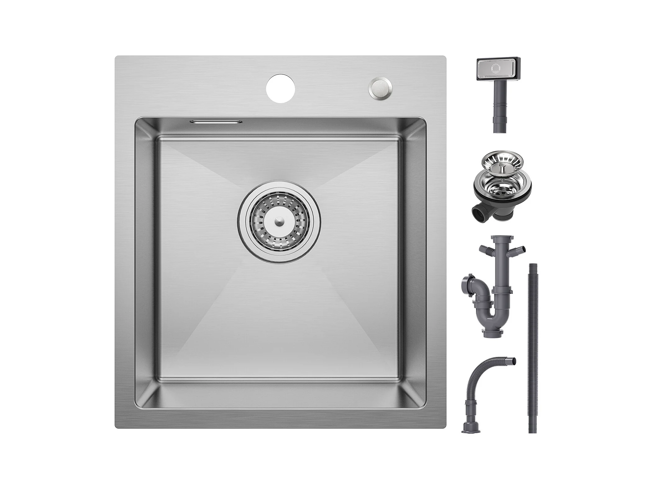 Cecipa MAX Évier Cuisine 1 Bac 40 × 45 cm Évier Inox Brossé + Mitigeur avec Douchette Extractible, Brossé
