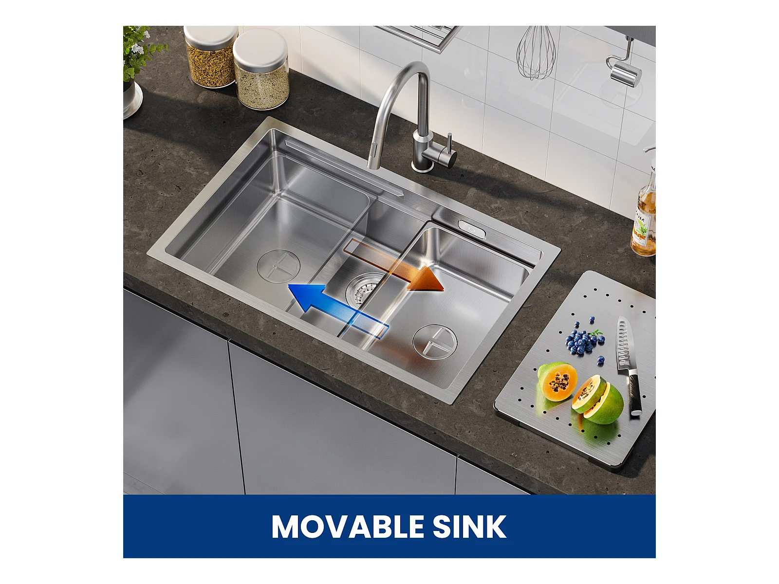 Cecipa max Évier Cuisine 1 Bac 70×44×21CM Évier à Encastrer Inox Brossé avec Egouttoir et Vasque,EU Modèle