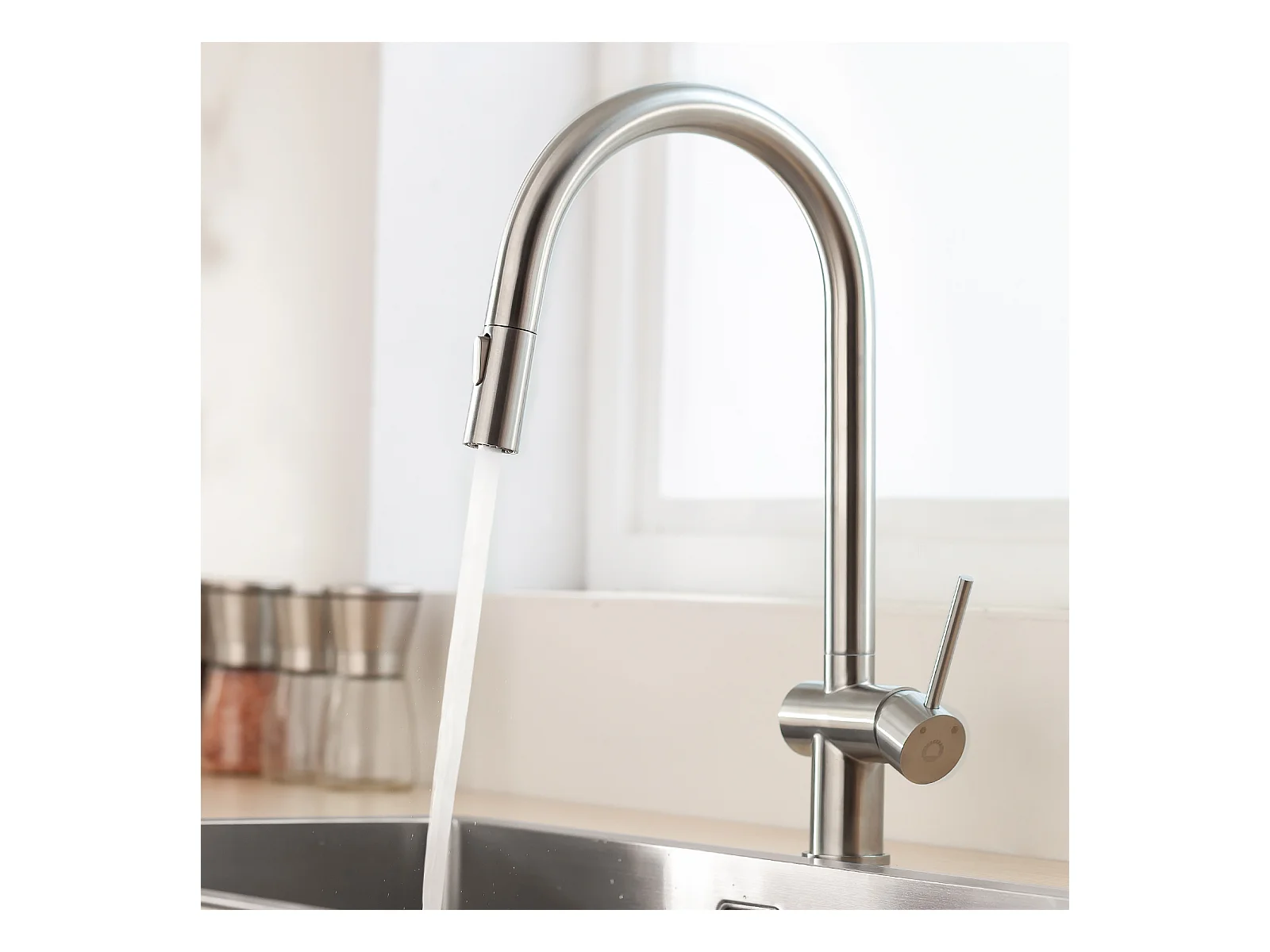 Robinet de cuisine extractible NETTLIFE - Mitigeur d'évier 360° avec douchette en acier inoxydable, 2 modes de pulvérisation