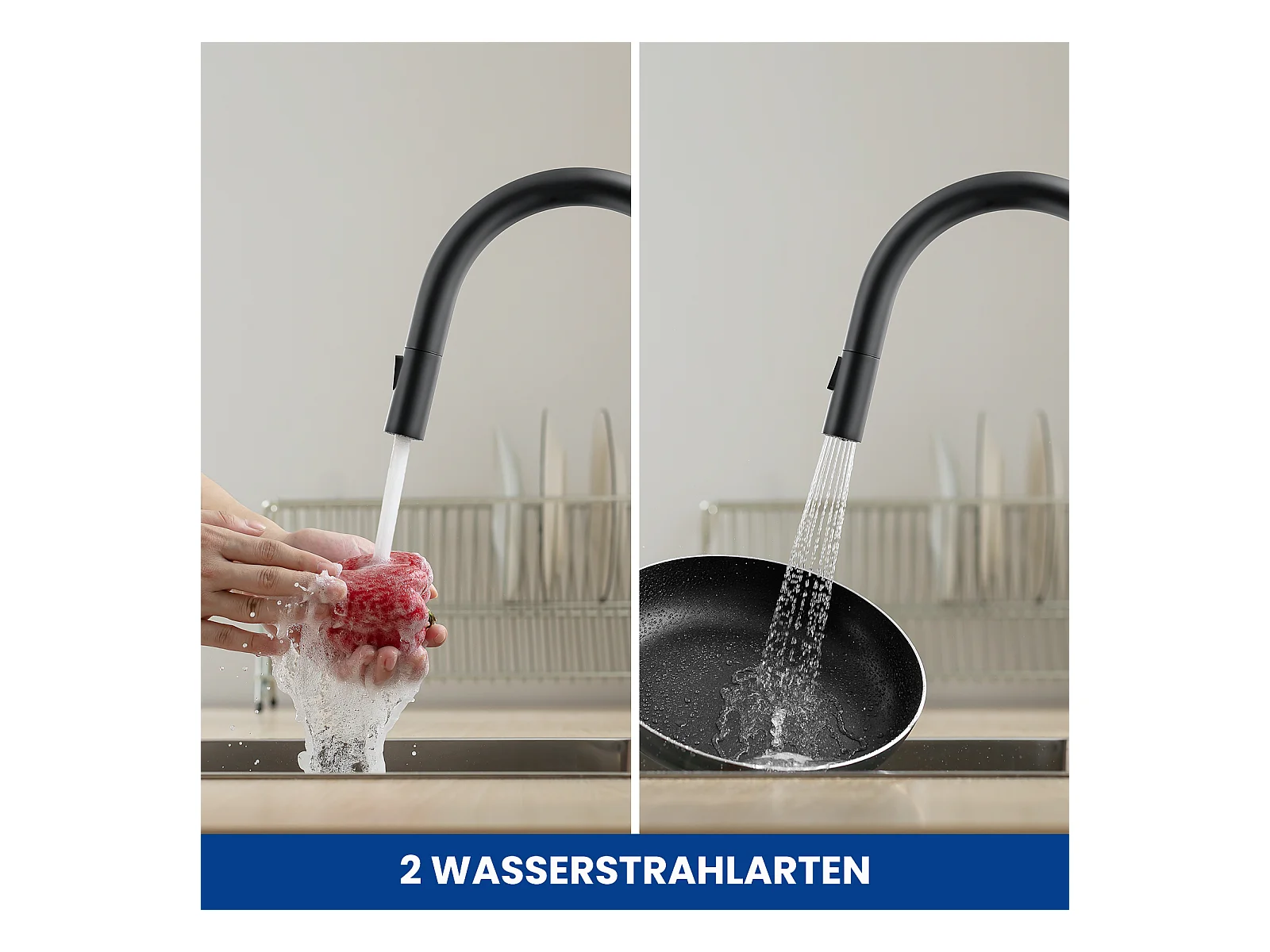 NETTLIFE Robinet de cuisine avec pomme de douche extensible, à haute pression, en acier inoxydable à jet double et pivotant à 360 °, Nickel