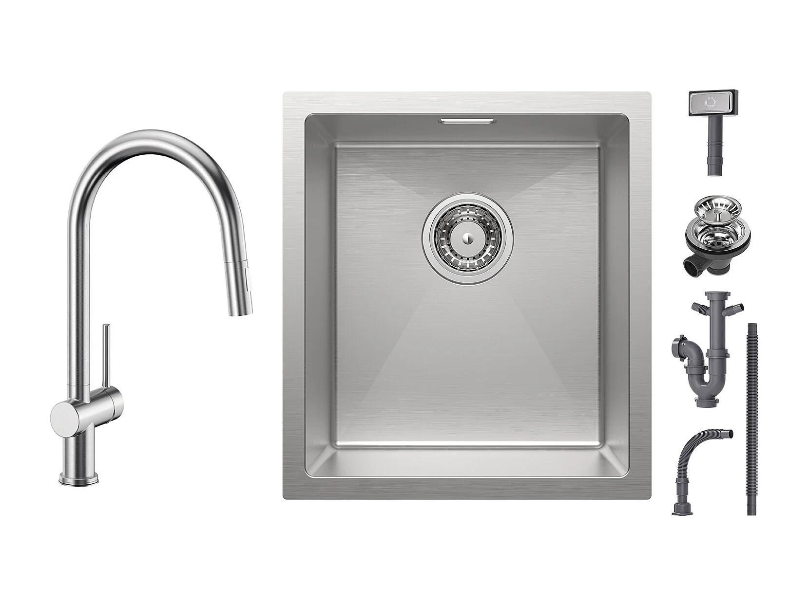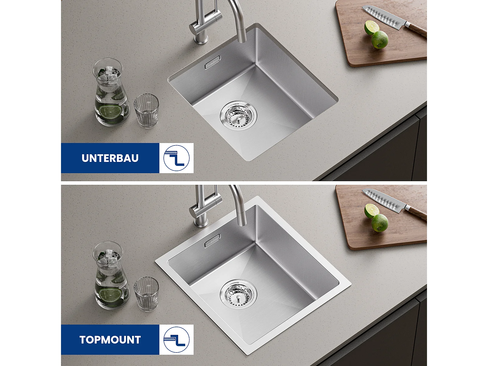 Cecipa max Évier de Cuisine 1 Bac 40x44cm - Évier Inox Évier Encastré Brossé + Mitigeur de Cuisine avec Douchette Extractible, Robinet en Inox Brossé