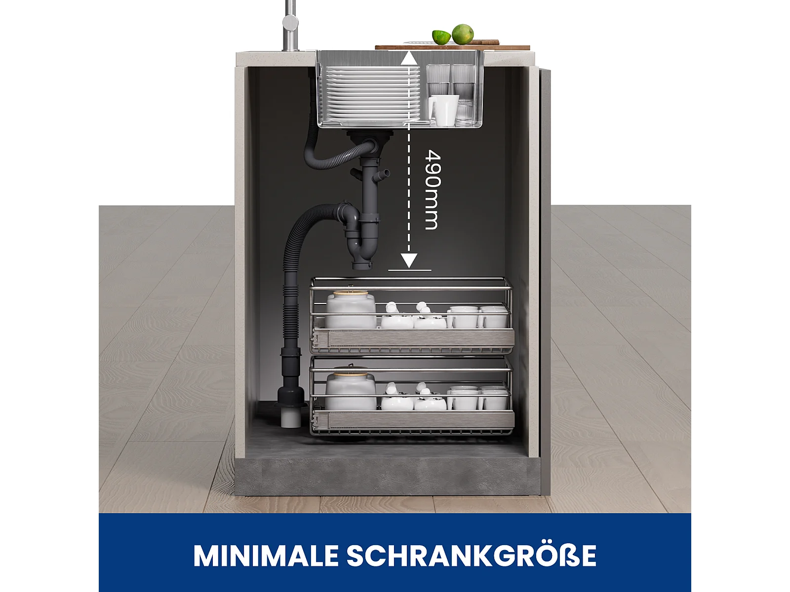 Cecipa max Évier de Cuisine 1 Bac 40x44cm - Évier Inox Encastré Brossé + Mitigeur avec Douchette Extractible Robinet avec 2 Modes de Sortie D'eau
