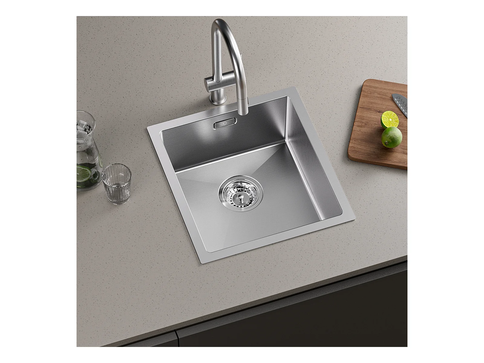 Cecipa MAX Évier de Cuisine 1 Bac 40x44x19 cm Évier Inox Brossé + Robinet de Cuisine à eau Froide,Brossé