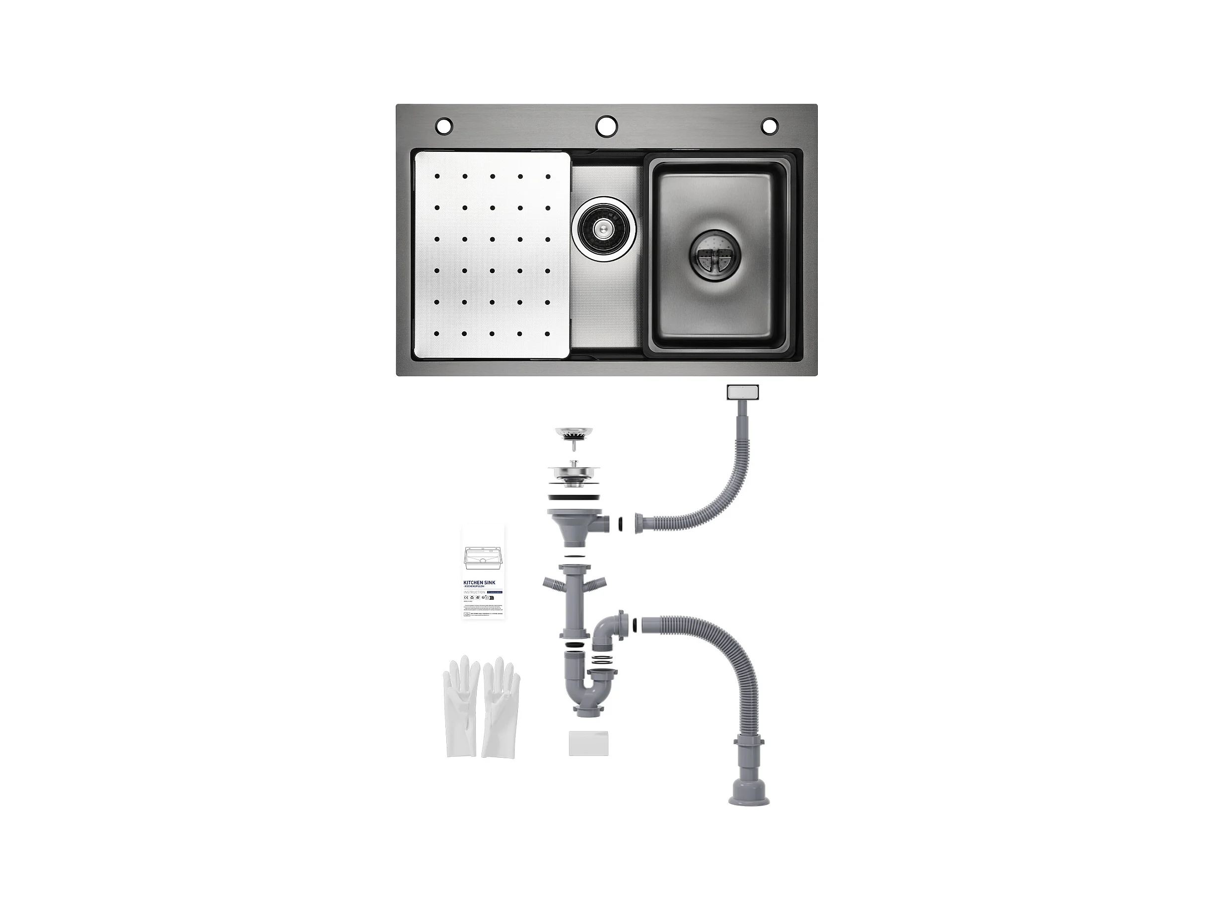 Cecipa max Évier 1 Bac 70×45CM Évier Inox Noir avec Egouttoir + Vasque + Distributeur de Savon (Montage sur le Dessus/Montage à Plat),EU Modèle