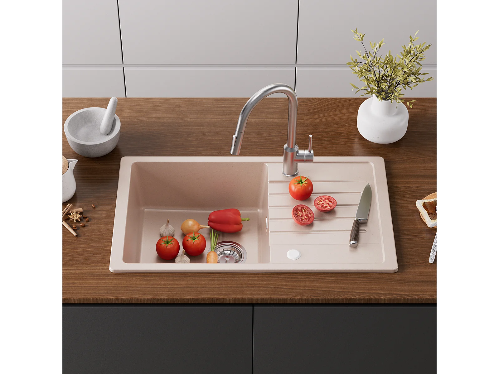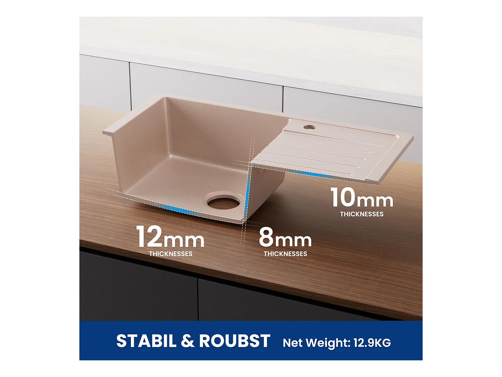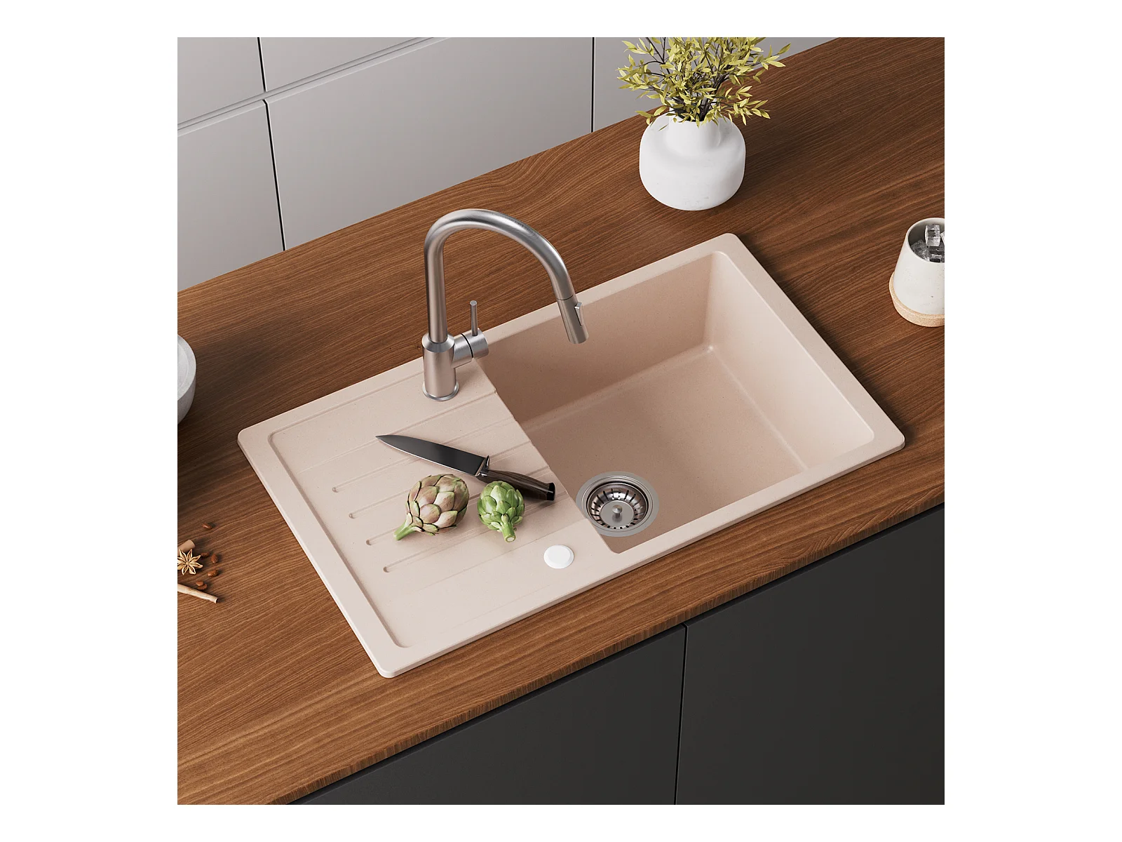 Cecipa max Evier de Cuisine avec Egouttoir Evier 1 Bac en Quartz et Résine 78x45cm Evier Cuisine en Granit Couleur Avoine,EU Modèle