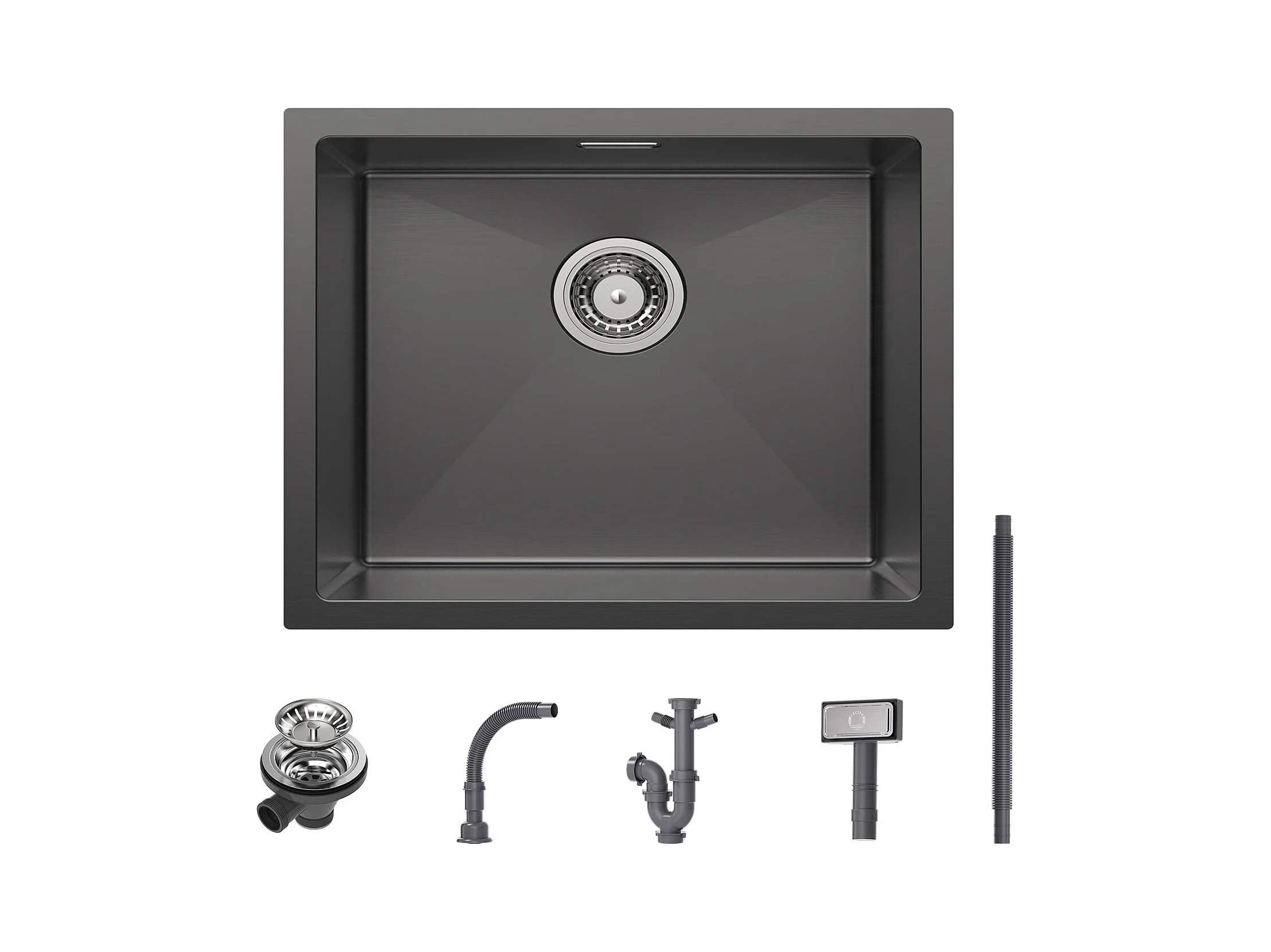 CECIPA MAX Évier de Cuisine 1 Bac Évier Inox 50*44CM Noir Anthracite + Mitigeur de Cuisine en Inox Noir