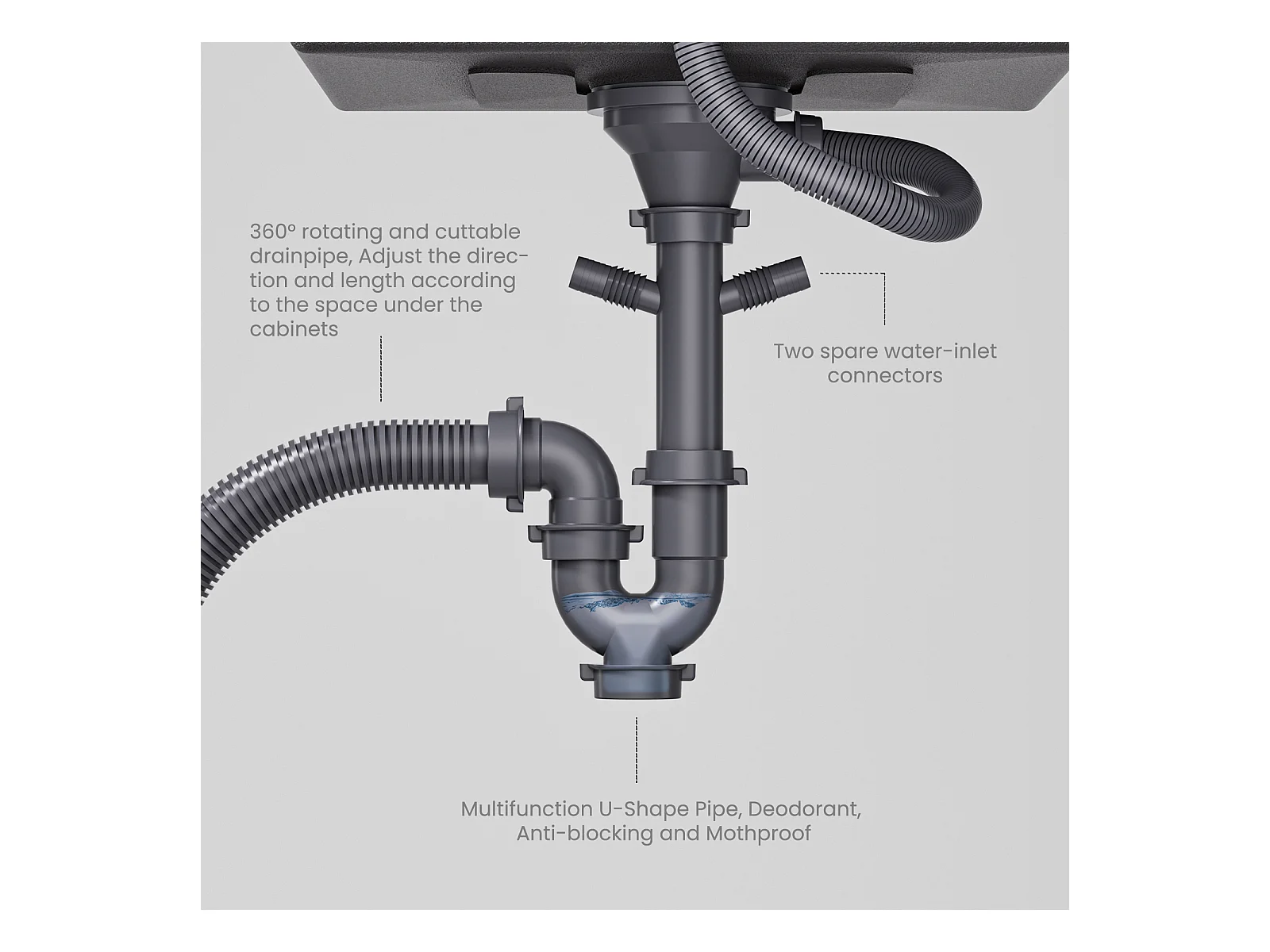 CECIPA MAX Évier de Cuisine 1 Bac Évier Inox 50*44CM Noir Anthracite + Mitigeur Cuisine pour Sstème D'osmose