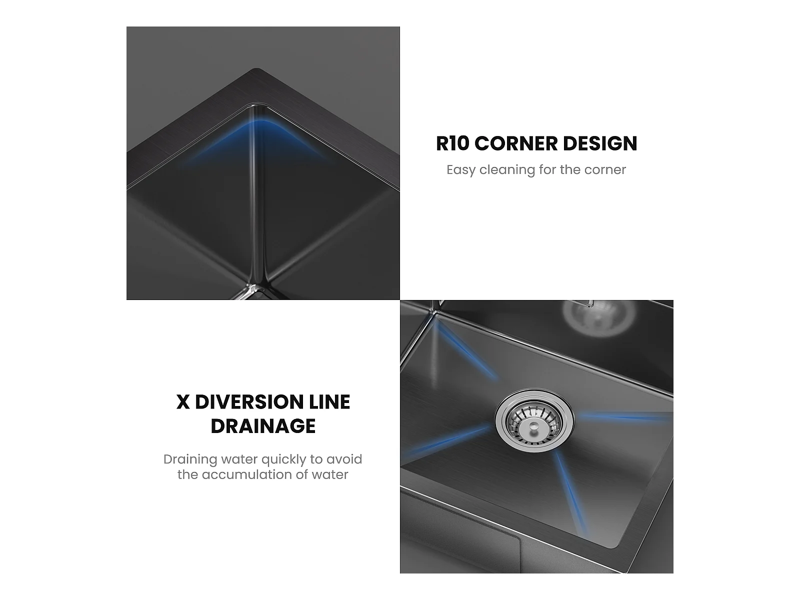 Cecipa max Évier Encastré 50*44CM Évier de Cuisine 1 Bac Évier de Cuisine En Acier Inoxydable - 201 Nanomètre Noir,EU Modèle