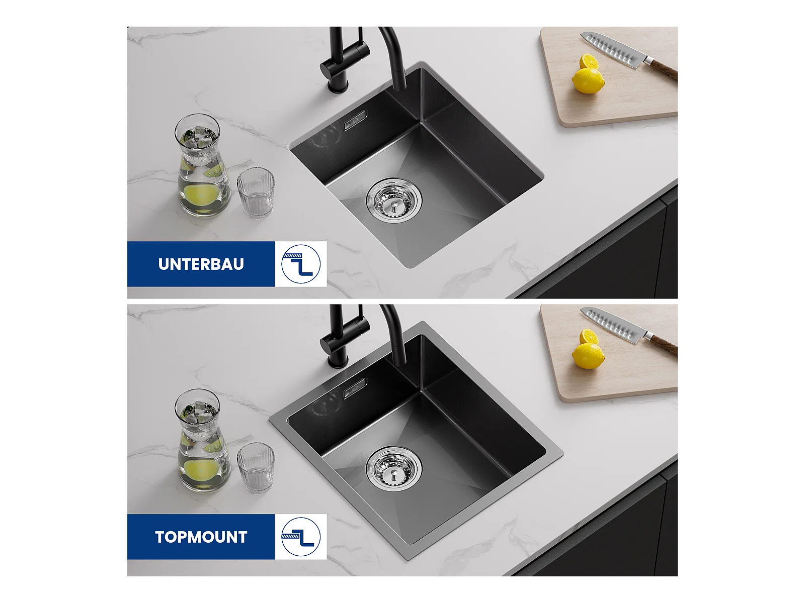 Cecipa max Évier Inox Encastré 40*44*19 cm Évier de Cuisine 1 Bac Évier de Cuisine - 201 Nanomètre Noir,EU Modèle