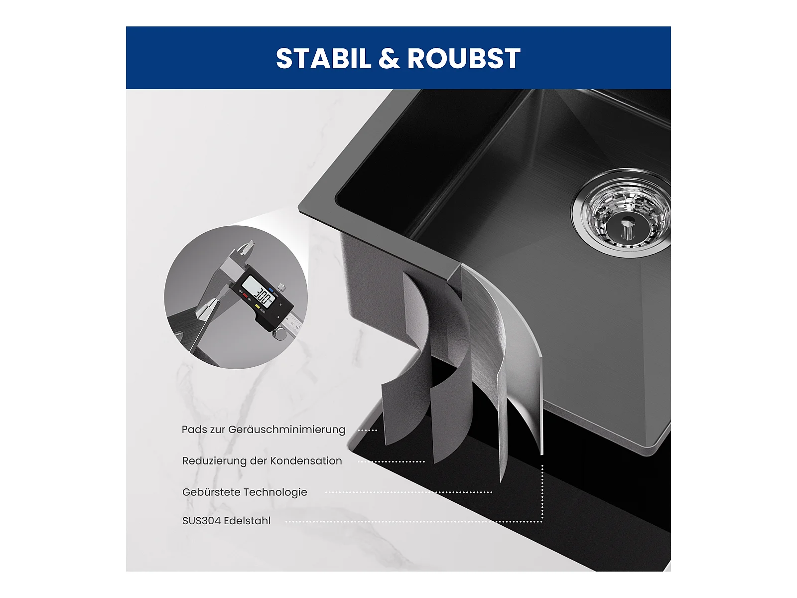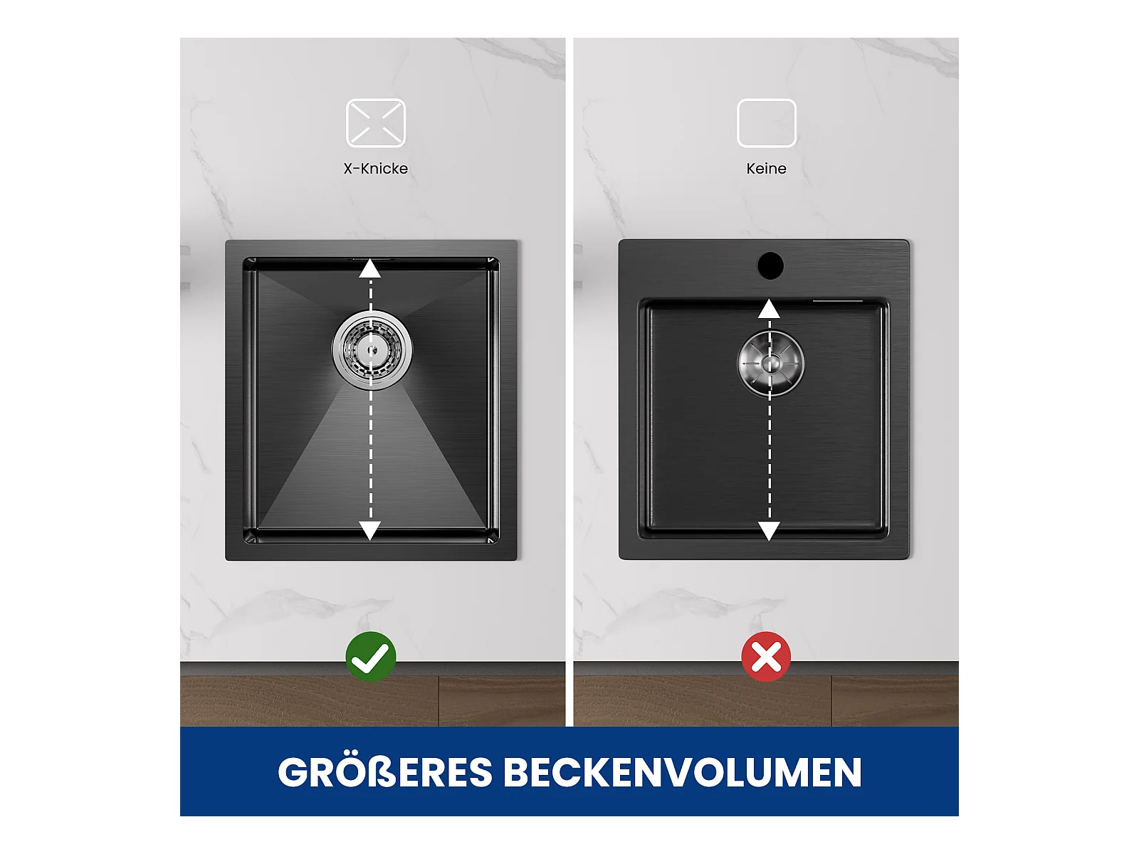 Cecipa max Évier Inox Encastré 40*44*19 cm Évier de Cuisine 1 Bac Évier de Cuisine - 201 Nanomètre Noir,EU Modèle