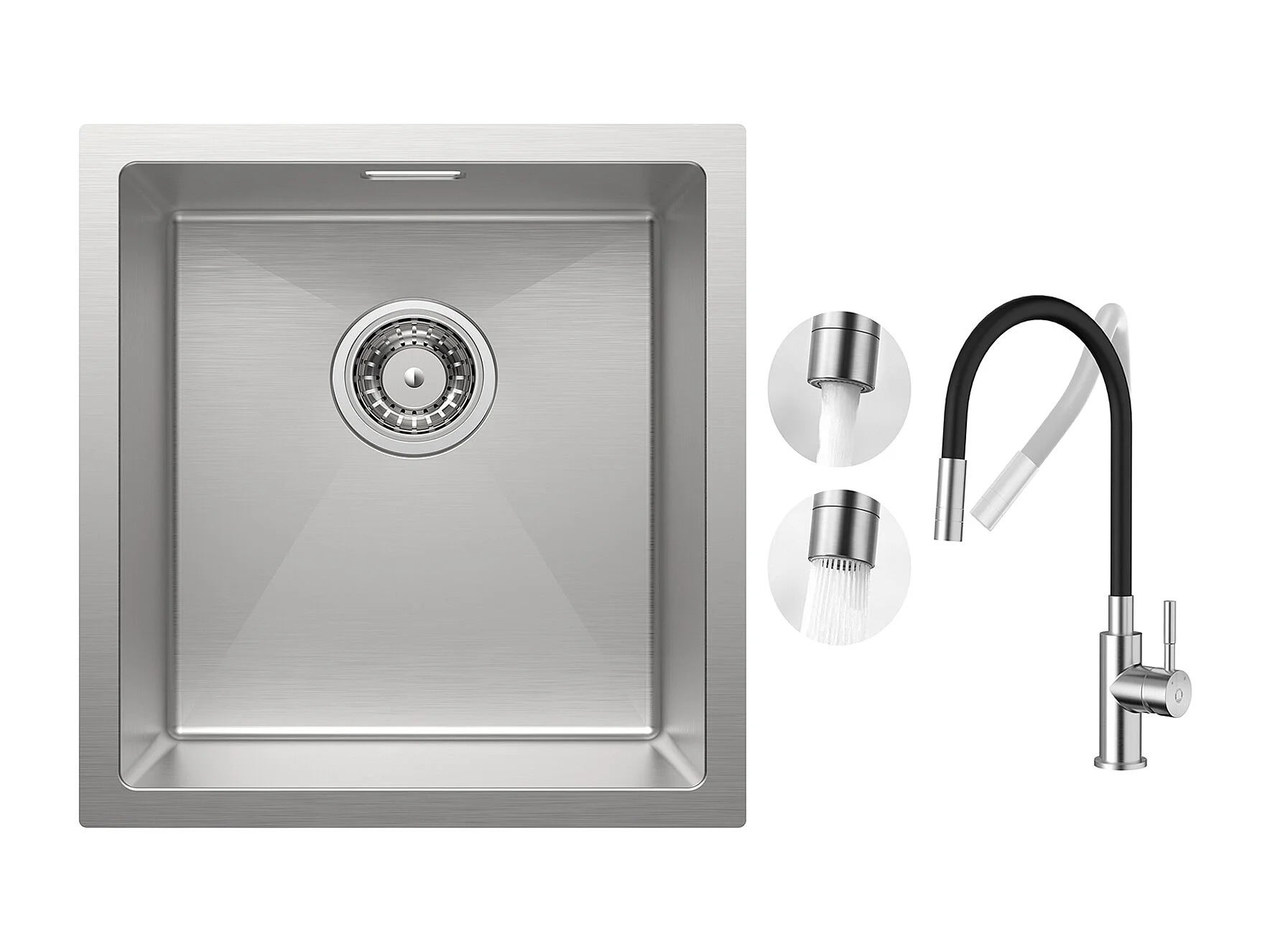 CECIPA MAX Évier Inox Encastré 40*44cm Évier de Cuisine 1 Bac Brossé + Flexible Mitigeur de Cuisine, 2 Types de Jets Robinet Extractible Brossé