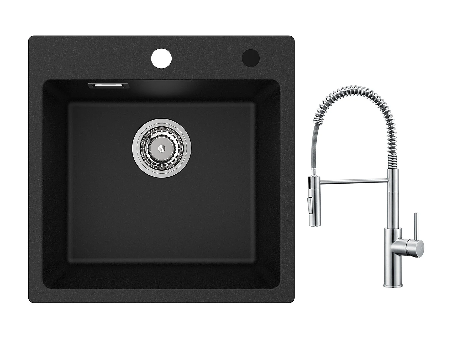 Cecipa max Evier Quartz Noir 45x45 cm Evier 1 Bac en Quartz et Résine + Mitigeur de Cuisine à Ressort avec 3 Modes de Sortie D'eau, Noir
