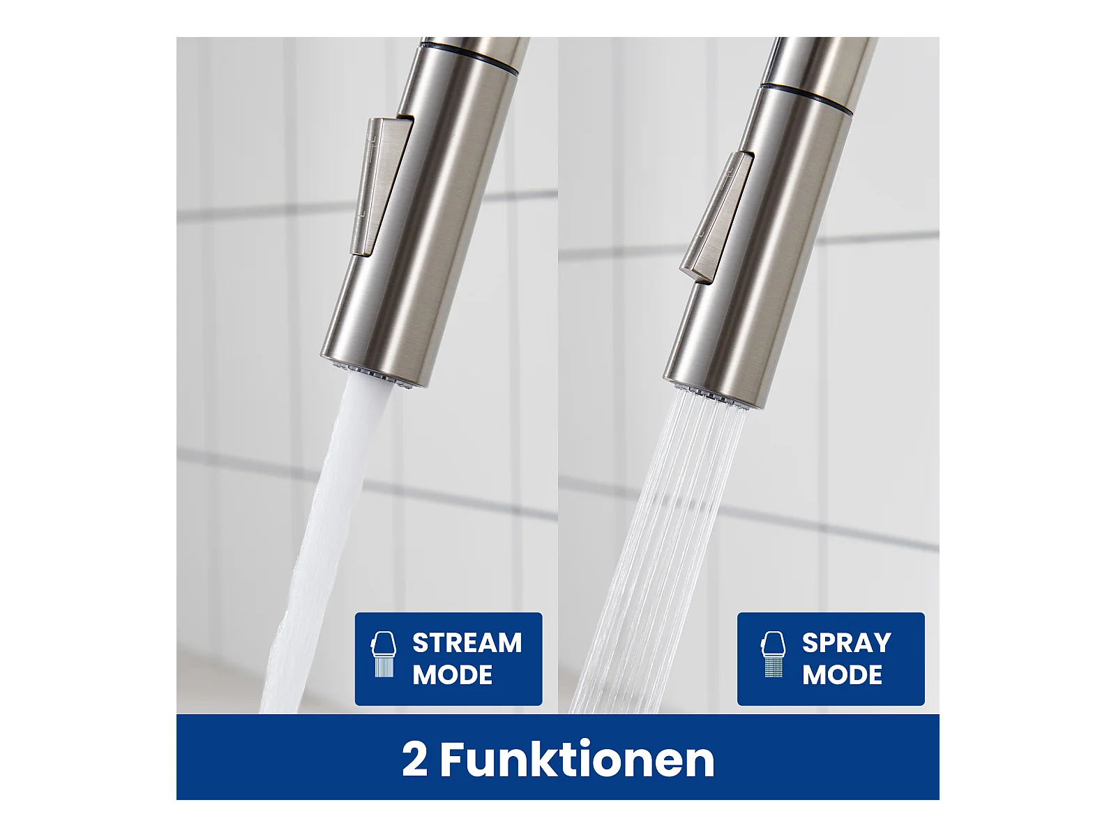 2PCS Mitigeur de Cuisine avec Douchette Extractible - Rotatif à 360 ° en Acier Inoxydable Brossé Mitigeur Cuisine d'Évier - 2 modes de sortie d'eau