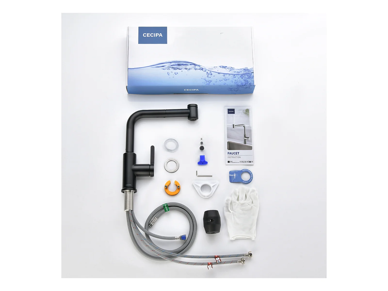 Cecipa max Mitigeur de Cuisine avec Douchette Extractible, Robinet d'évier Noir, Robinet d'eau Chaude et Froide, 2 Modes de Sortie D'eau,EU Modèle