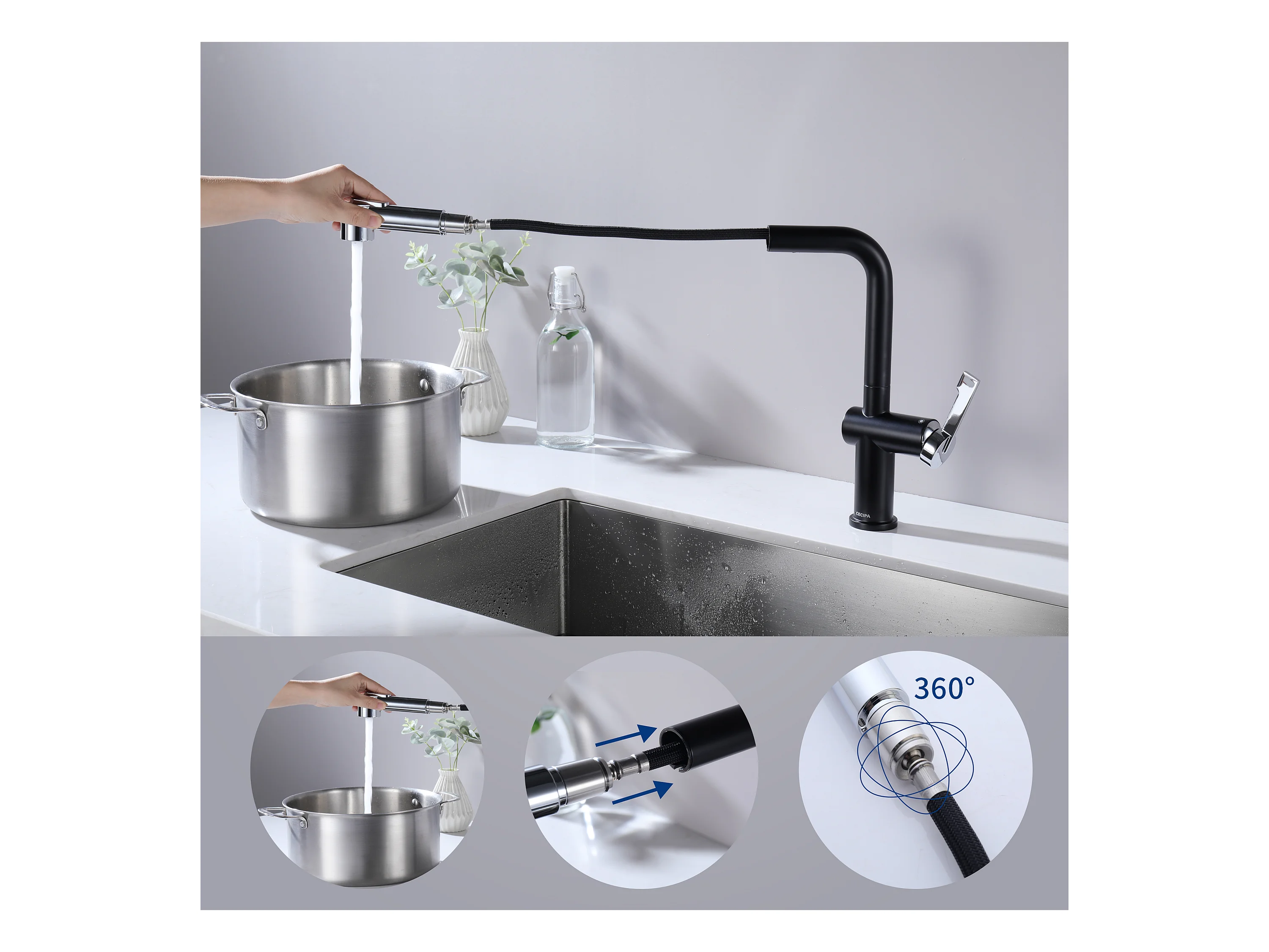 Cecipa max Mitigeur de Cuisine Extractibleavec 2 modes de sortie d'eau, Robinet de Cuisine 360 Rotatif, Noir + Galvanique,EU Modèle