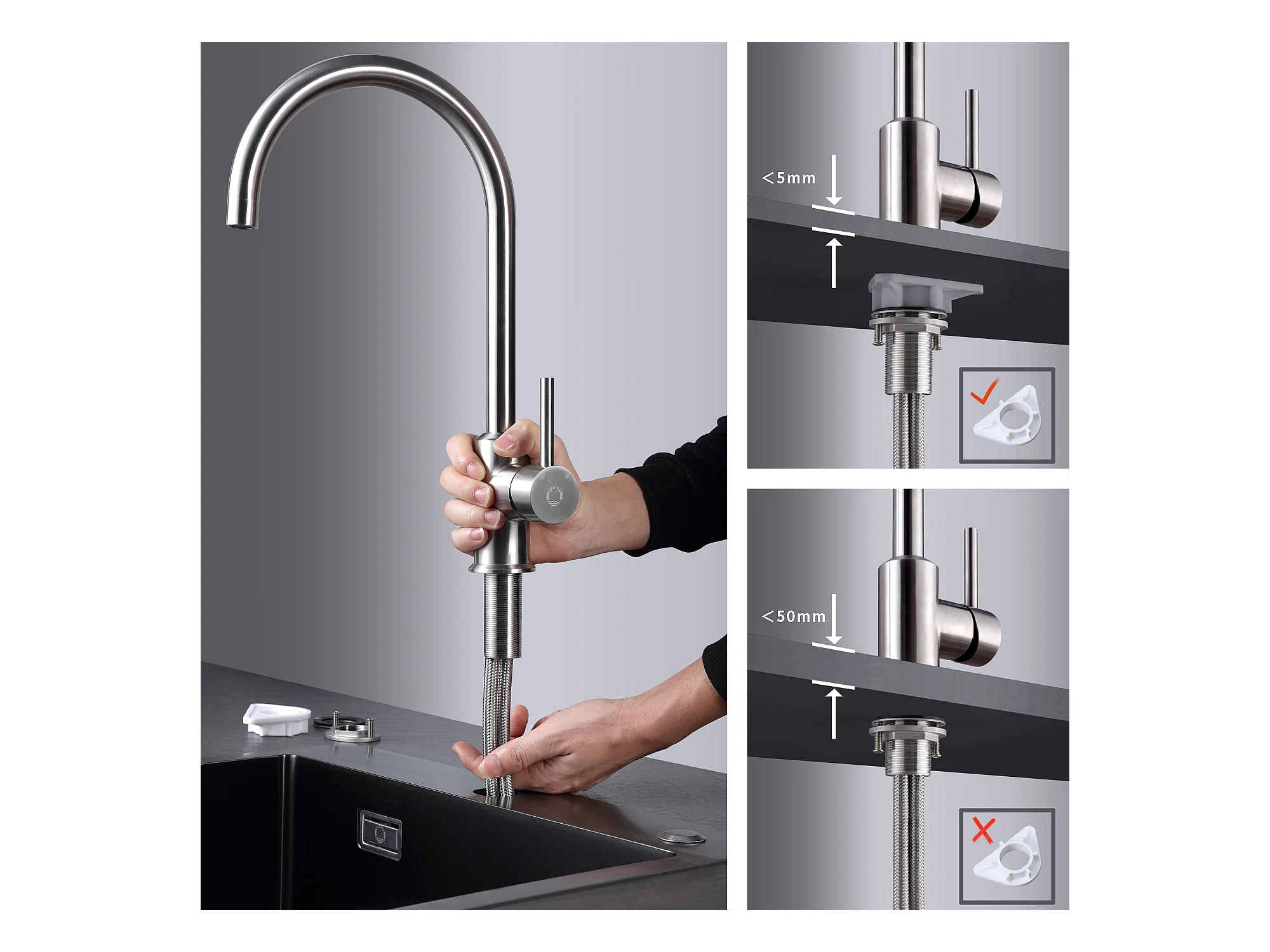 2PCS Cecipa max Mitigeur de Cuisine Monocommande, Robinet Évier en Acier Inox , Robinetterie Rotatif à 360° Brossé,EU Modèle