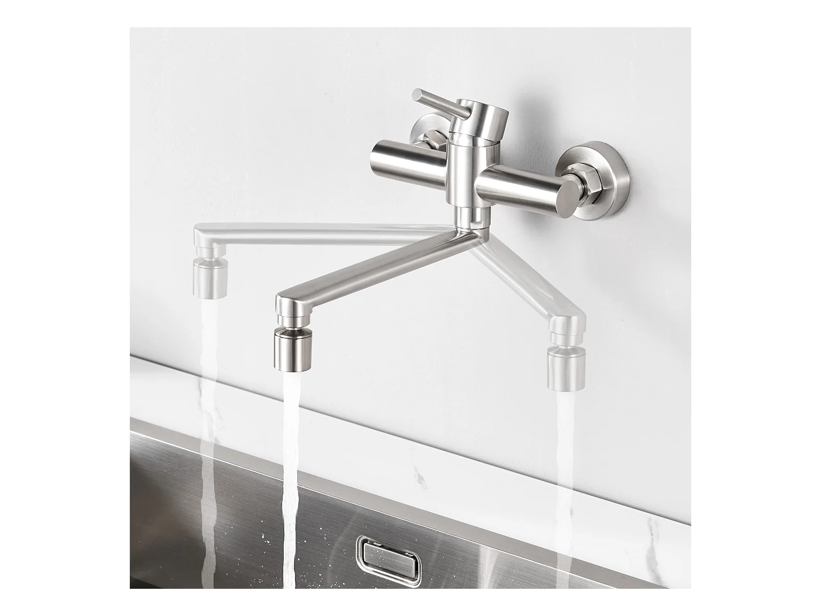 Cecipa max Robinet de Cuisine Mural avec Bec Orientable - Mitigeur d'évier 2 Jets au Choix - Brossé Robinetterie Mural Pivotant à 360°,EU Modèle