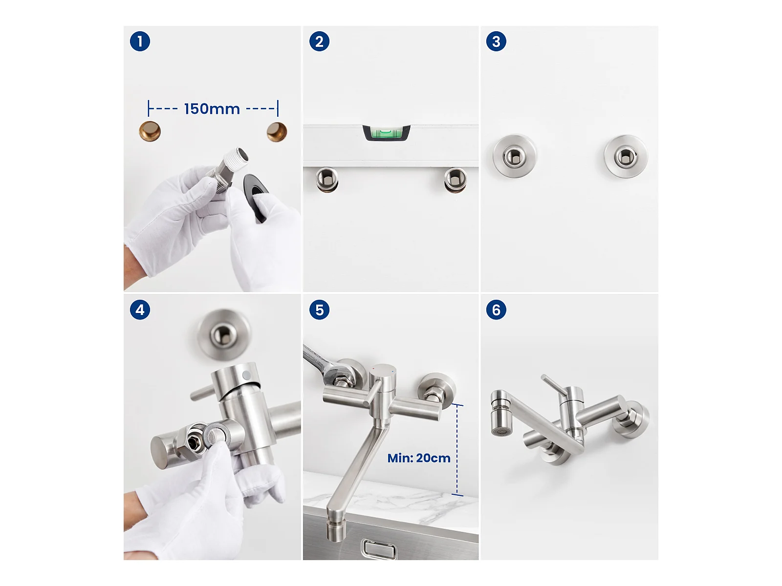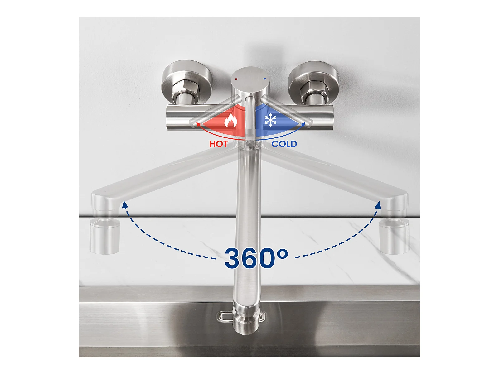Cecipa max Mitigeur de Cuisine Mural Brossé, Robinet Evier Mural avec 2 Jets, Mitigeur Cuisine Pivotant à 360° Robinetterie d'évier,EU Modèle