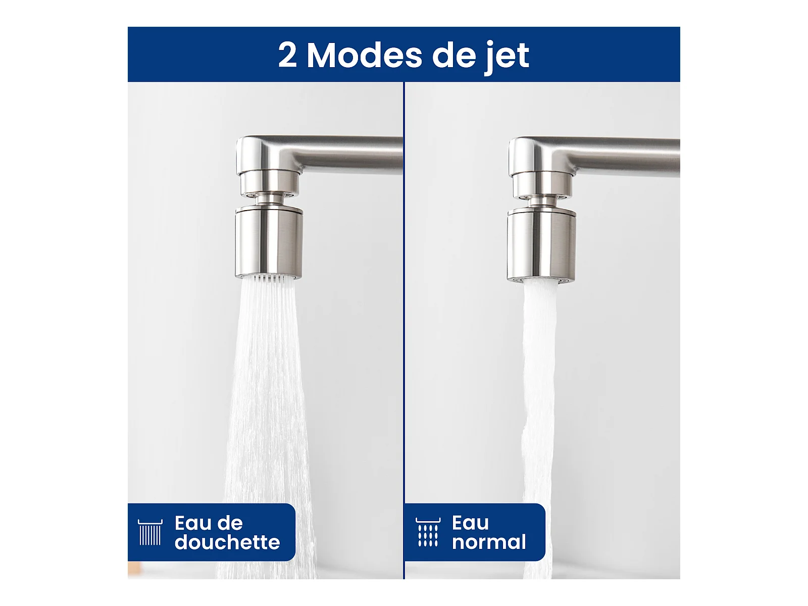 2PCS Mitigeur Cuisine avec Douchette Robinet Douchette d'évier Extractible Deux Jets Bec Haut Pivotant 360° avec Barboteur Démotable,EU Modèle