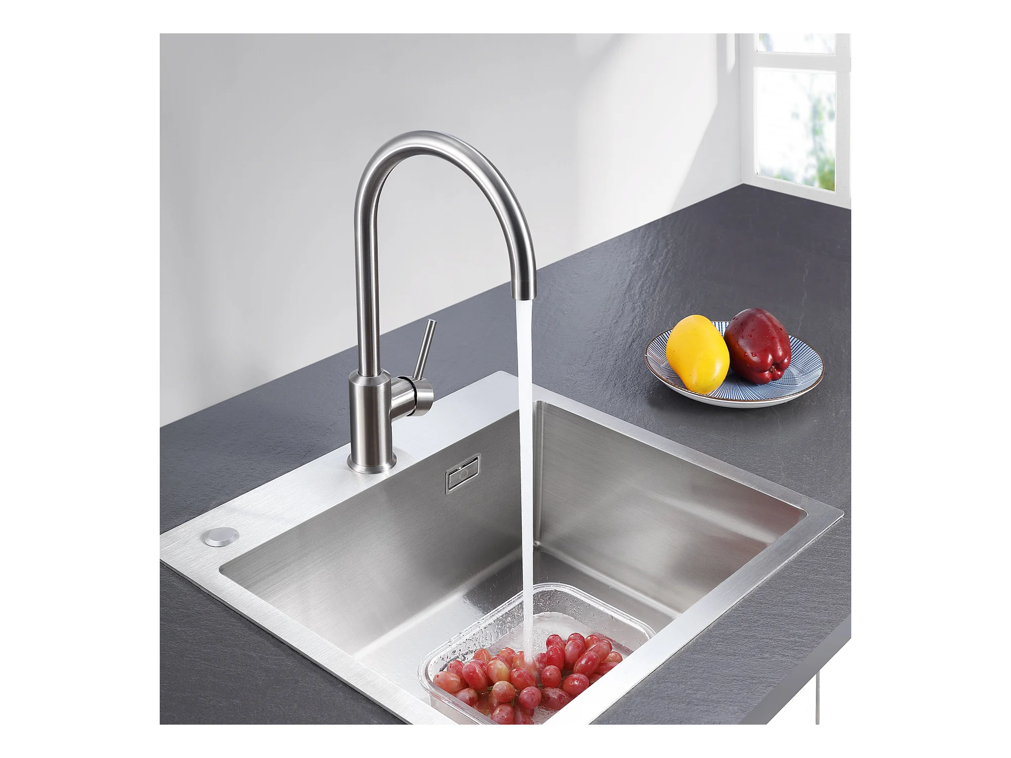 Cecipa max Mitigeur de Cuisine Monocommande, Robinet Évier en Acier Inox , Robinetterie Rotatif à 360° Brossé,EU Modèle