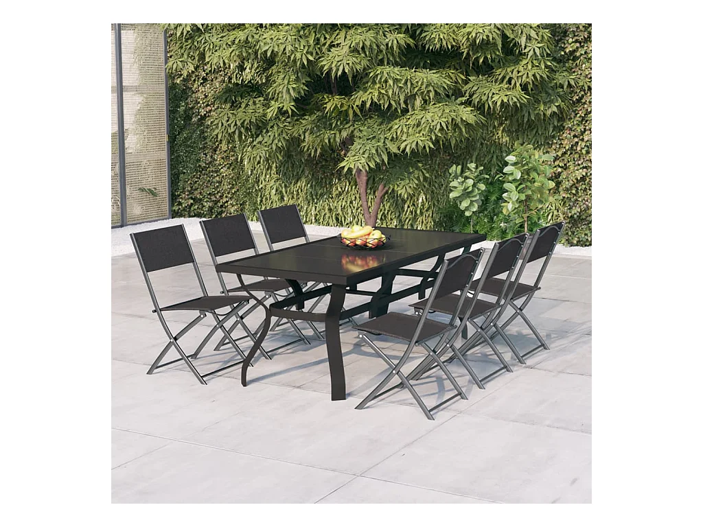 Azzedine Ensemble à manger de jardin 7 pcs Noir